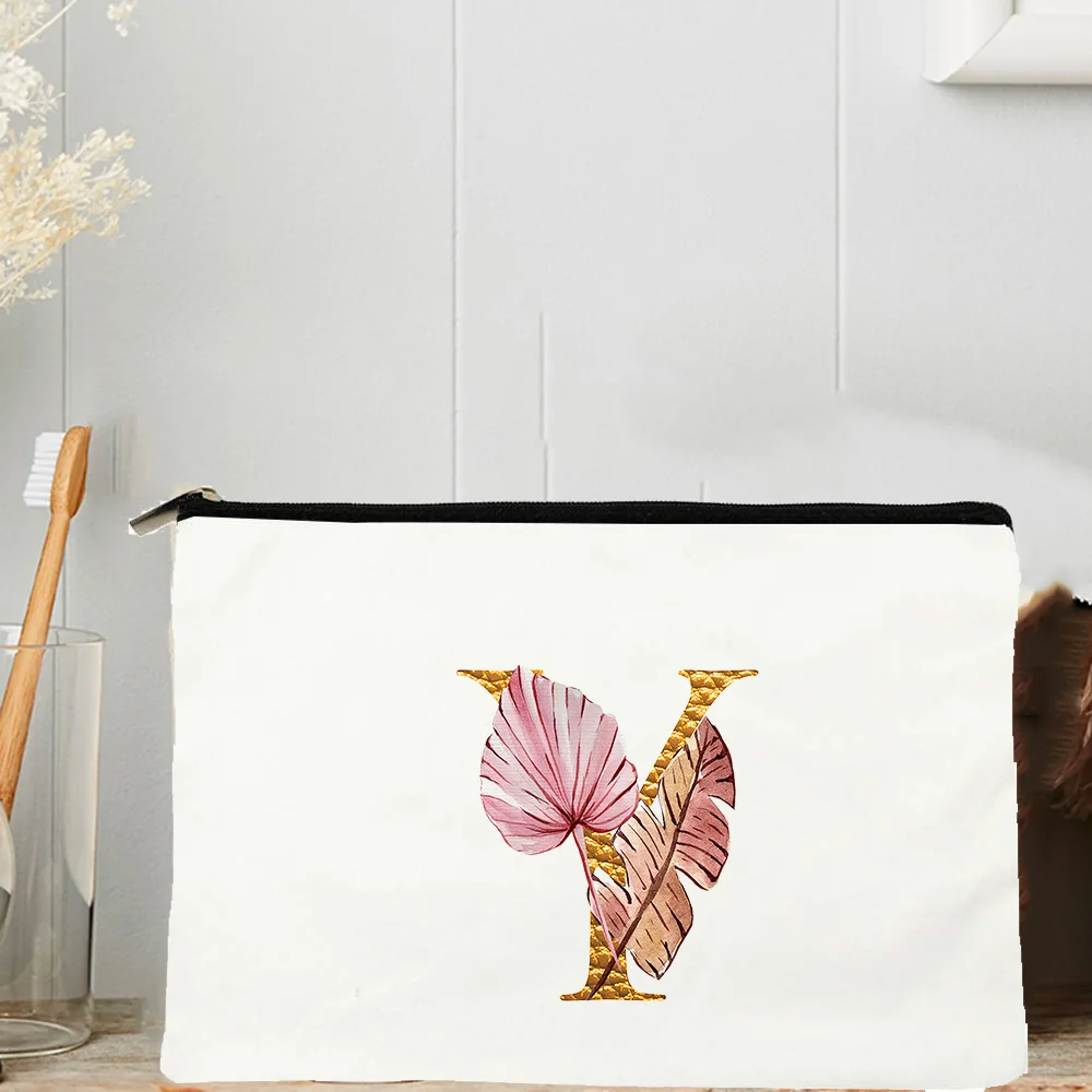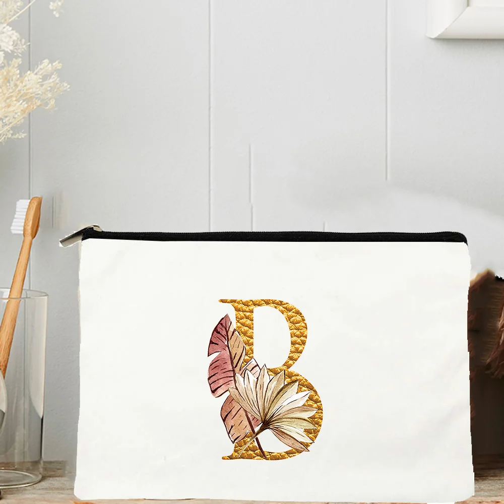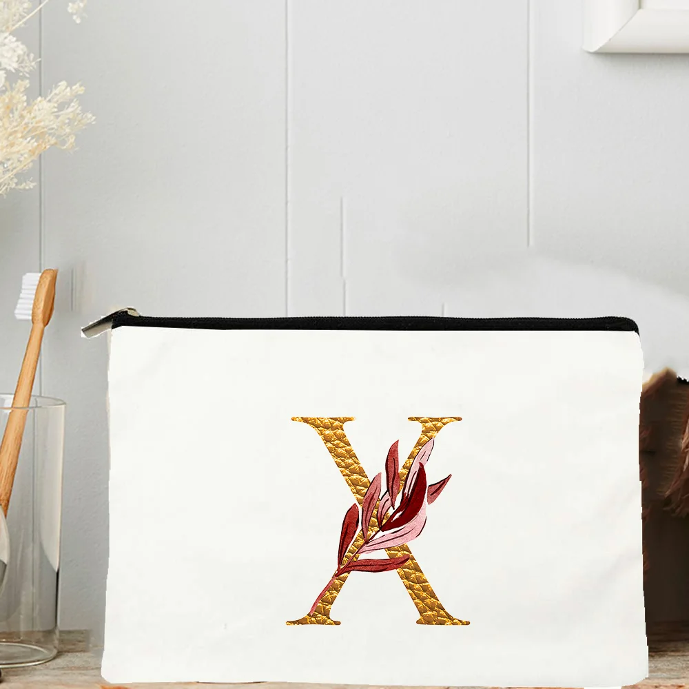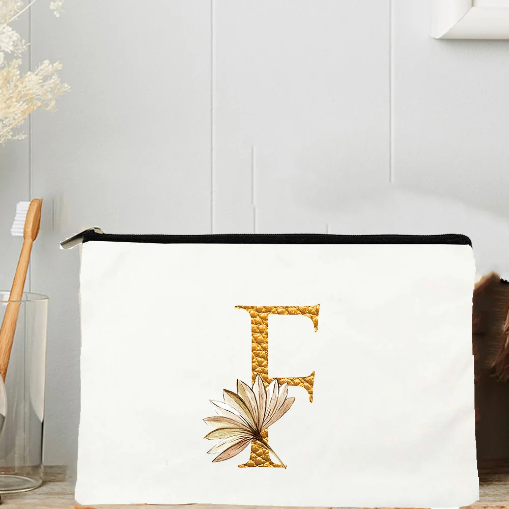 Модные золотые красивые косметички с буквами и цветами, сумка для туалетных принадлежностей, дорожный органайзер, косметичка, повседневные складные милые кошельки