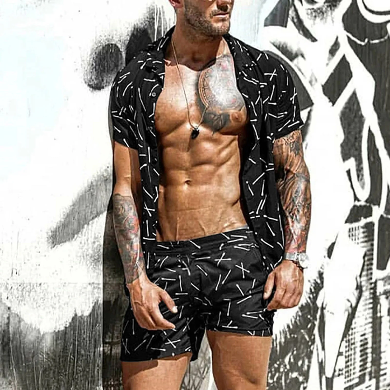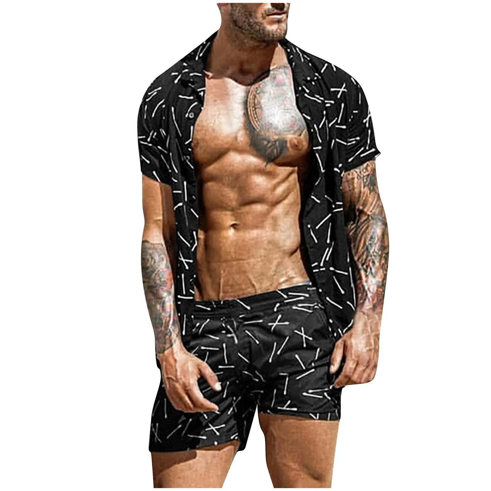 Мужские комплекты из двух предметов, рубашка и шорты с коротким рук...