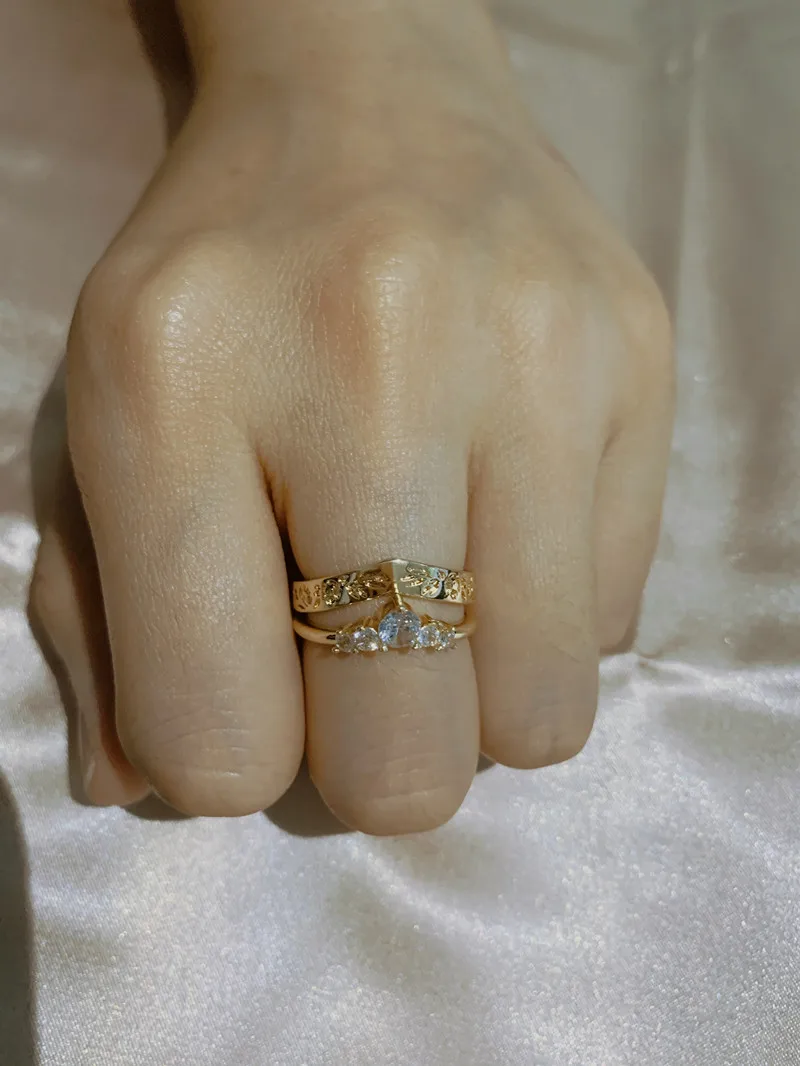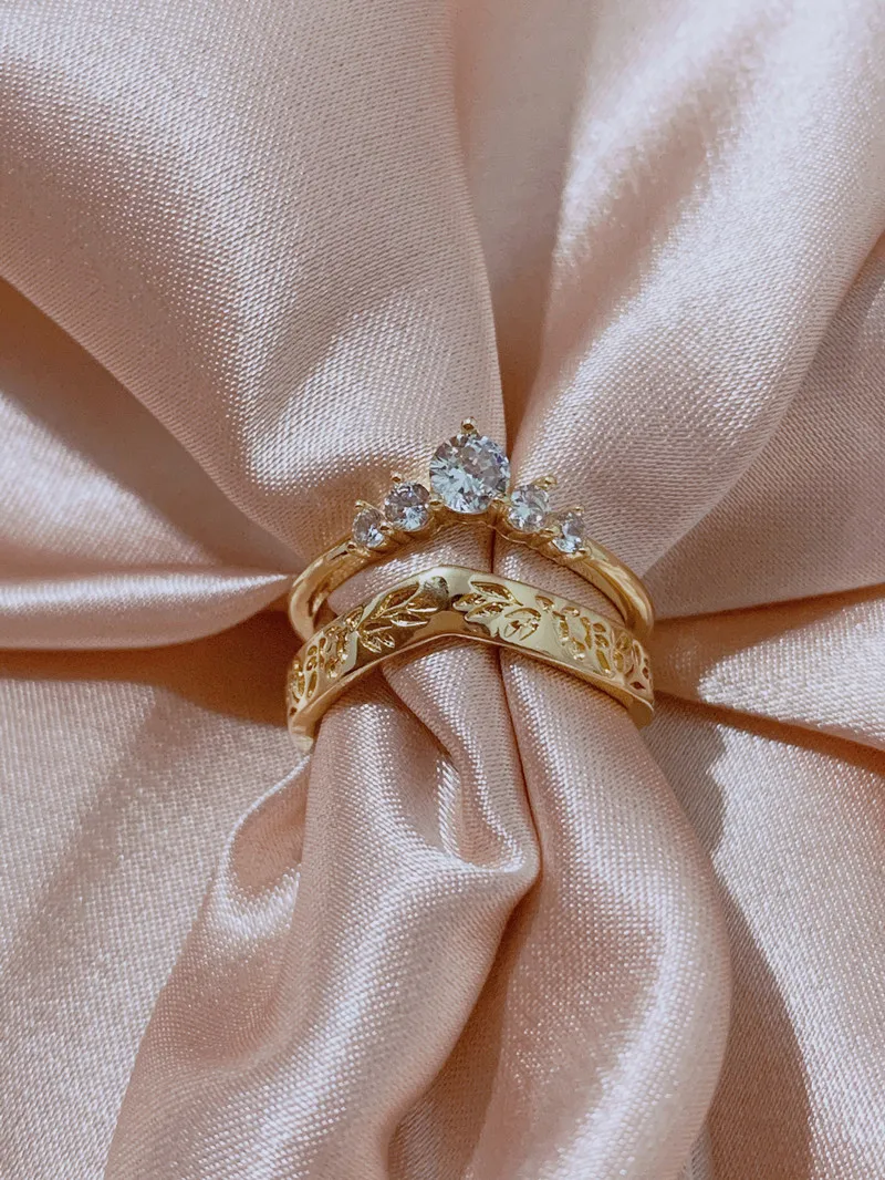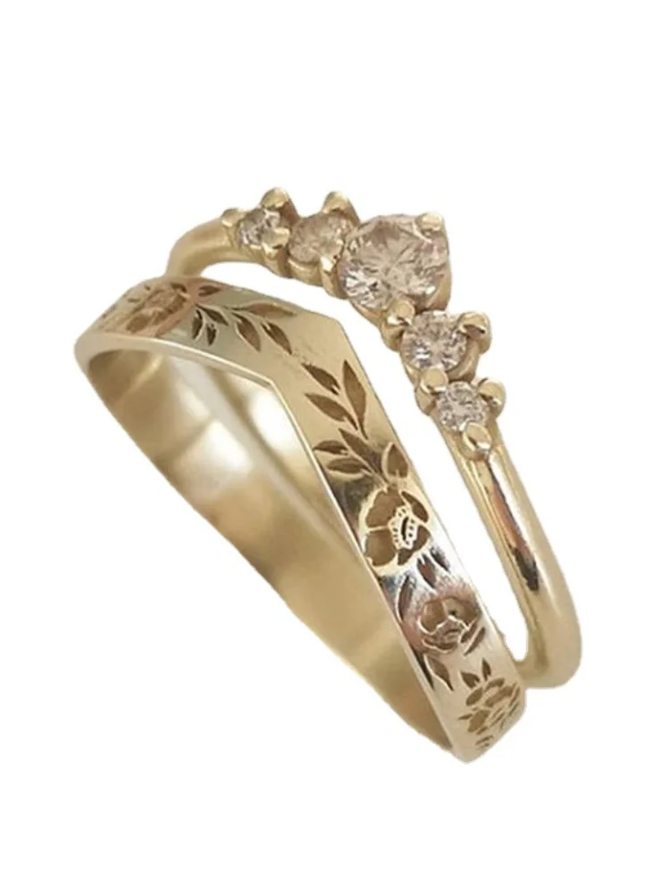 Кольцо женское со съемным резным цирконом, Ювелирный Комплект из двух колец в ретро стиле, свадебная бижутерия, аксессуар для отдыха