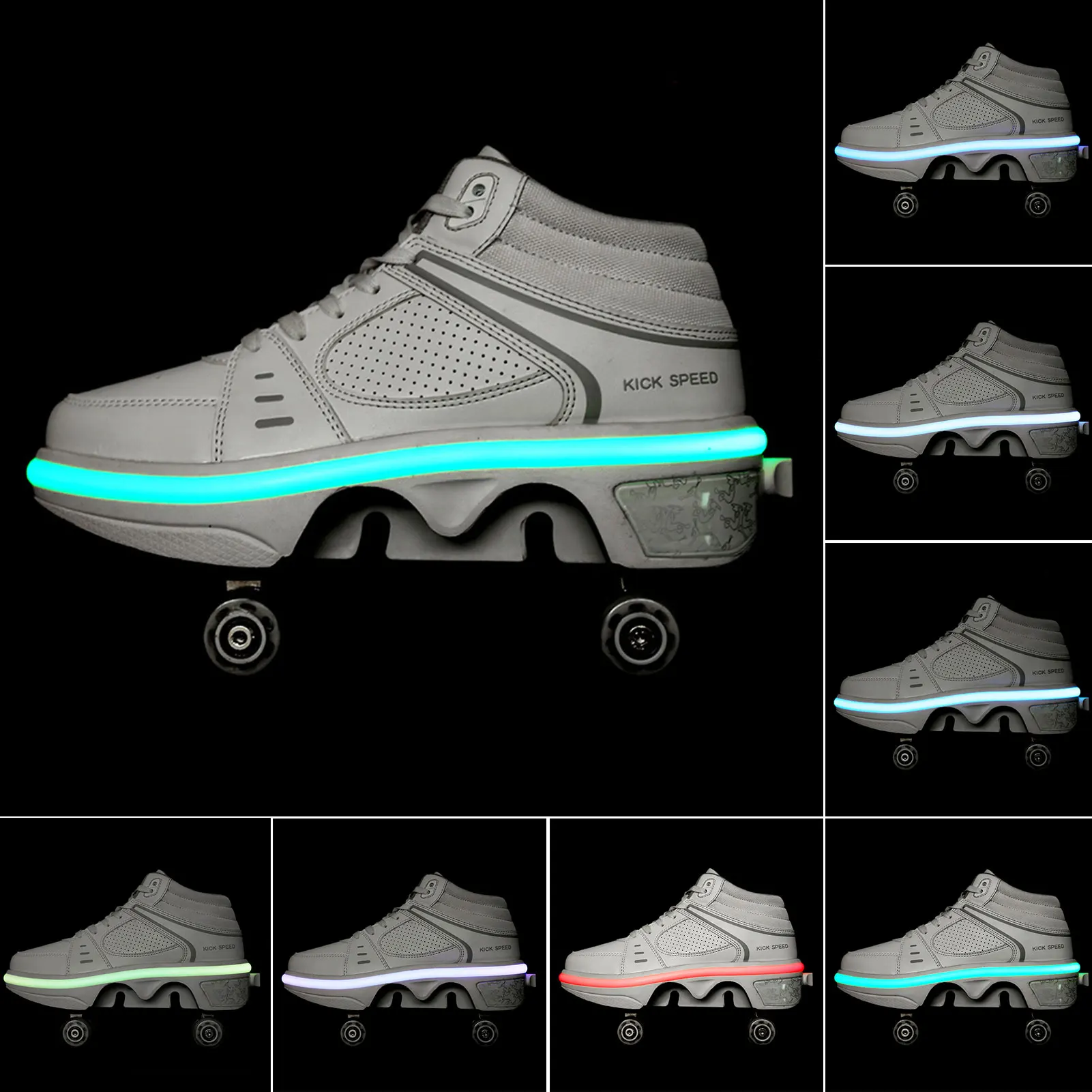 Двойного назначения роликовые коньки двухрядные деформационные туфли семицветный дыхательный светильник многофункциональная четырехколесная обувь