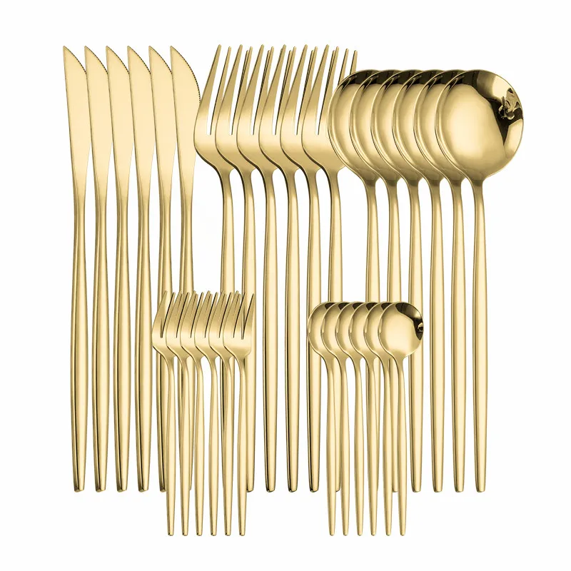Всего 30 шт. в комплекте, 6 ×Нож для ужина+ 6 × dВнутренняя вилка+ 6 × ужинЛожка+ 6 × чайВилка+6×ЧайЛожка