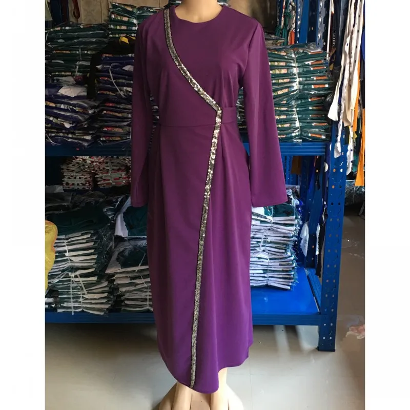 Женское платье макси в мусульманском стиле, элегантное платье с длинным рукавом, со шнуровкой и блестками, 2021
