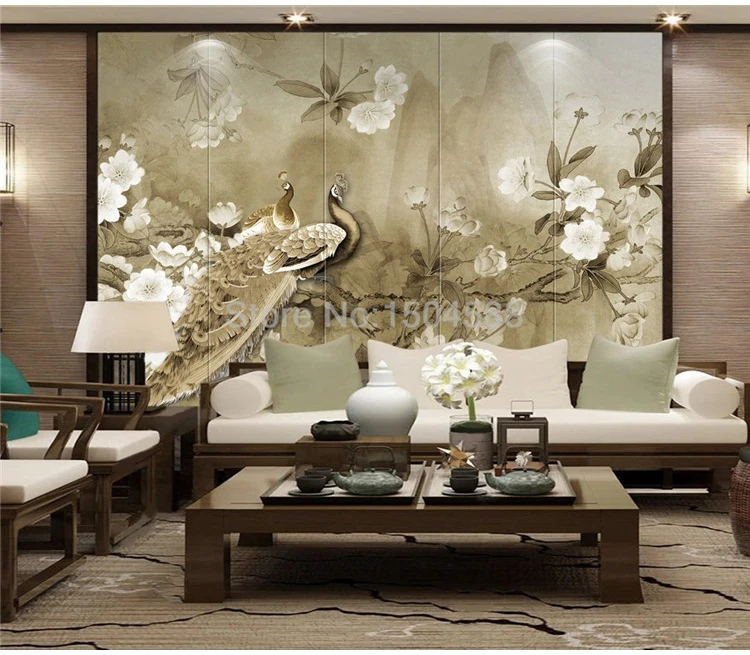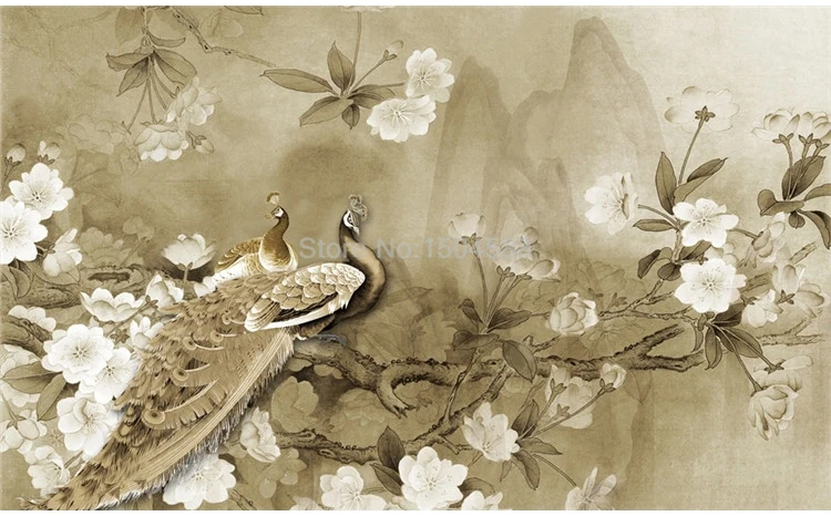 Настенные обои в китайском стиле на заказ, классические художественные 3D-обои с павлином, цветами, для гостиной, фона для телевизора