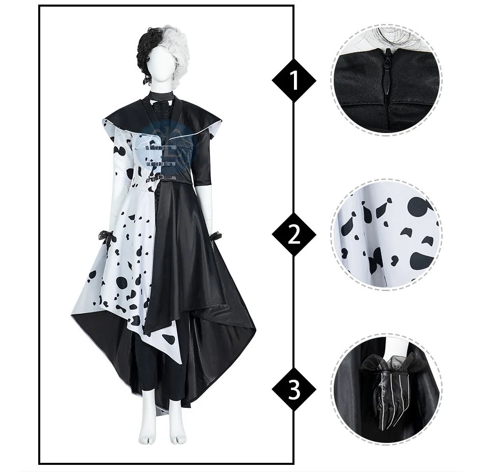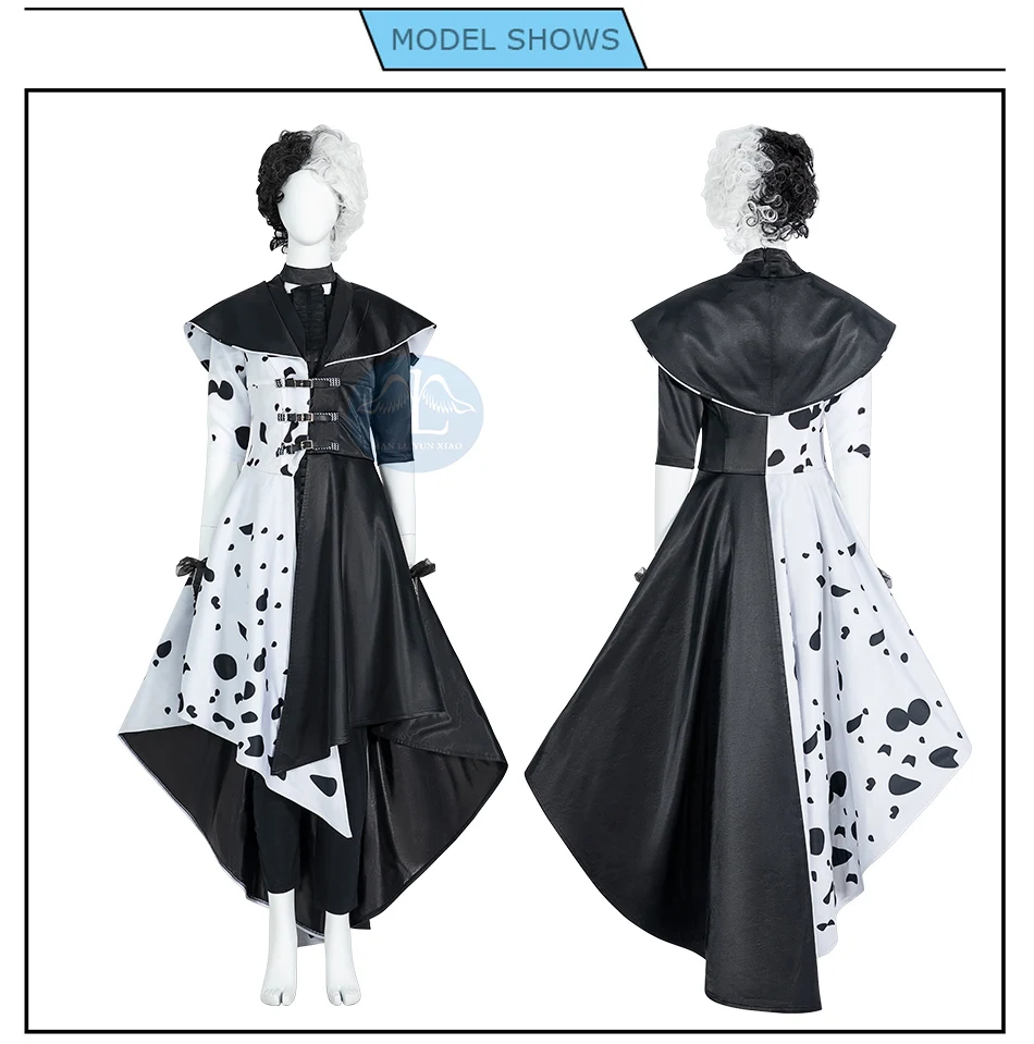 Новинка 2021, костюм для косплея ManLuYunXiao из фильма Cruella De Vil, костюм на Хэллоуин, костюм ведьмы Cruella, пальто для косплея, женское платье на заказ