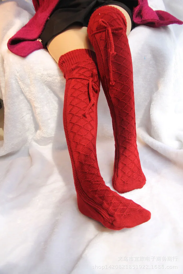 Новые рождественские женские длинные вязаные чулки для девочек женс...