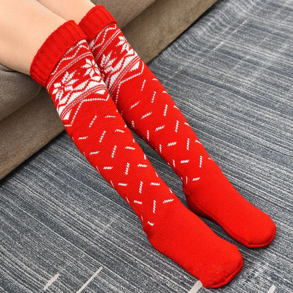 Рождественские чулки женские длинные вязаные чулки для девочек женс...