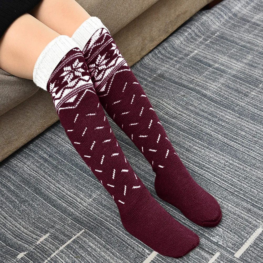 Женские зимние теплые мягкие вязаные носки, Рождественские Длинные ...