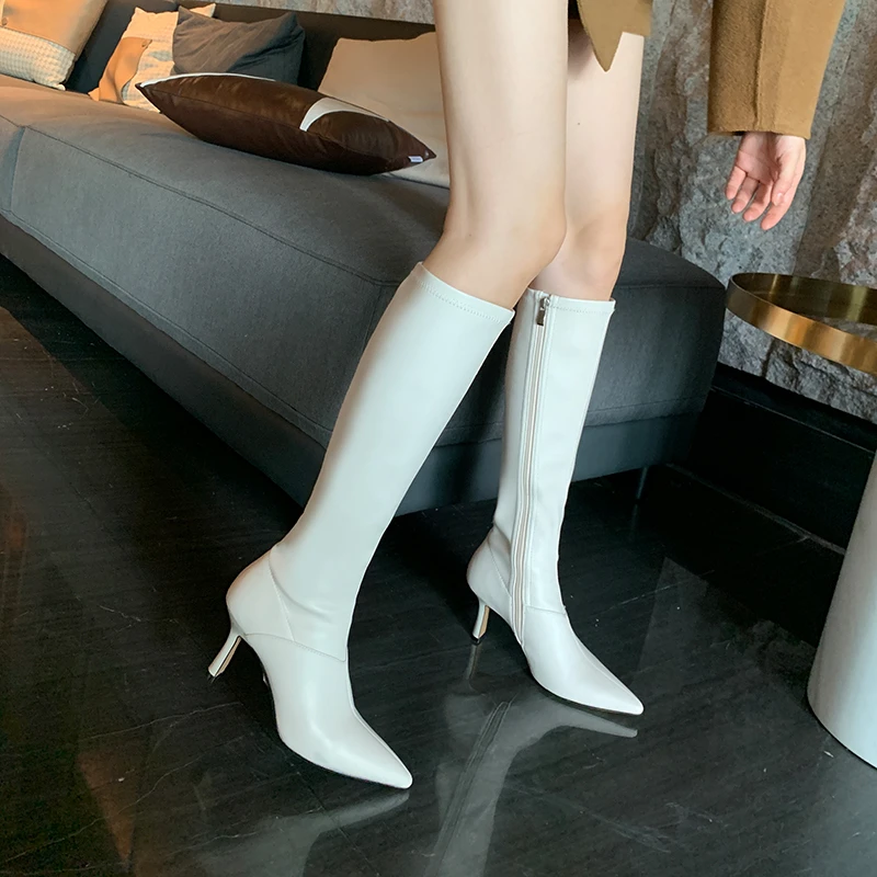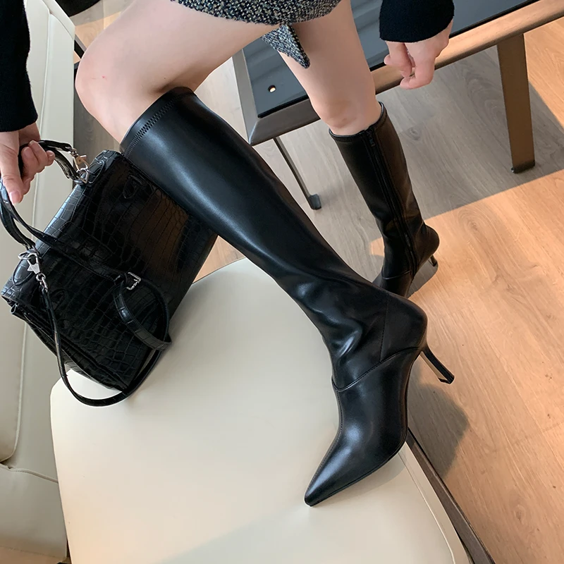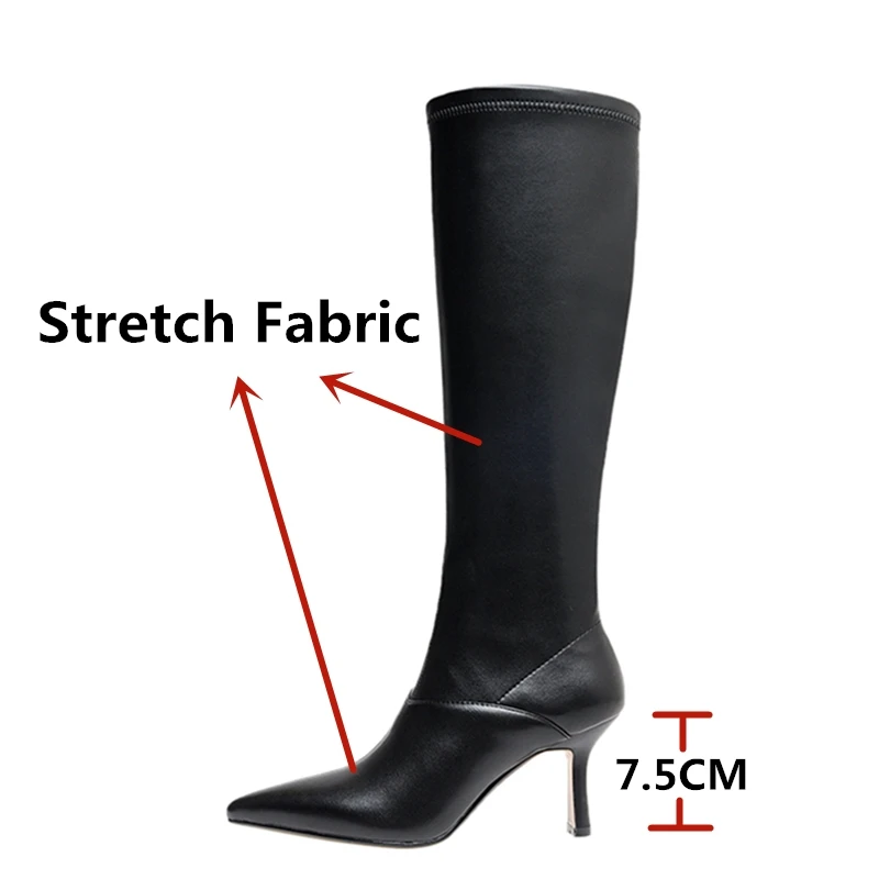 FEDONAS2021 г.; Модные женские Стрейчевые сапоги до колена с острым носком на высоком каблуке с боковой молнией; Вечерние женские повседневные выразительные облегающие высокие сапоги