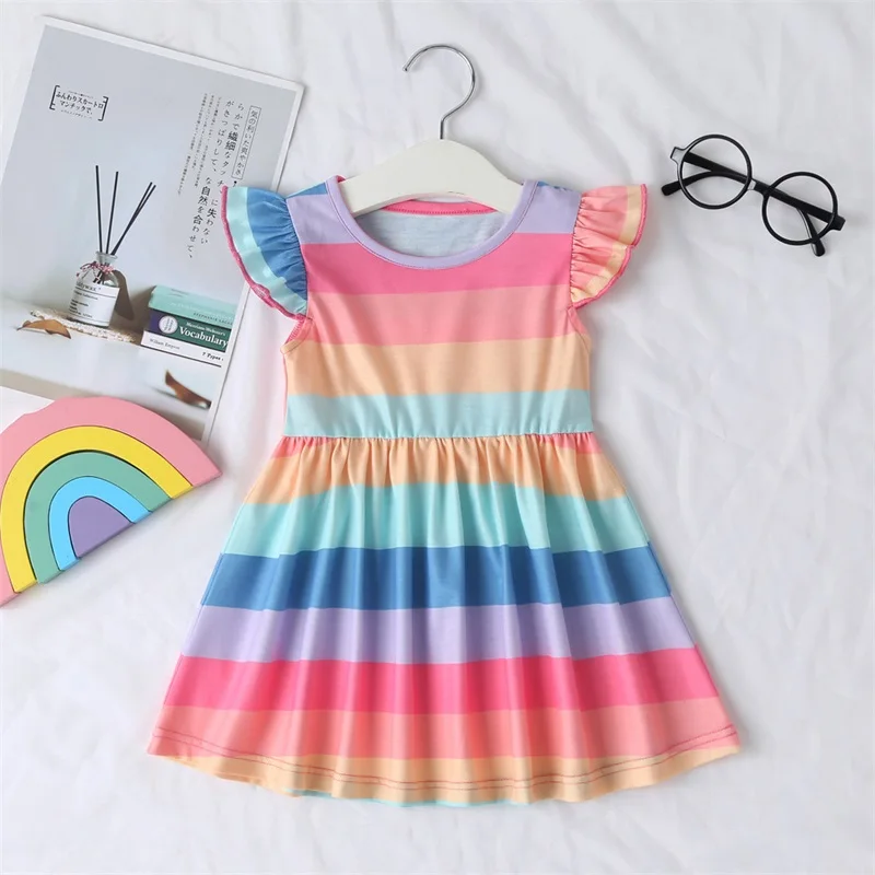Детское Радужное платье принцессы в полоску с рукавами-крылышками д...