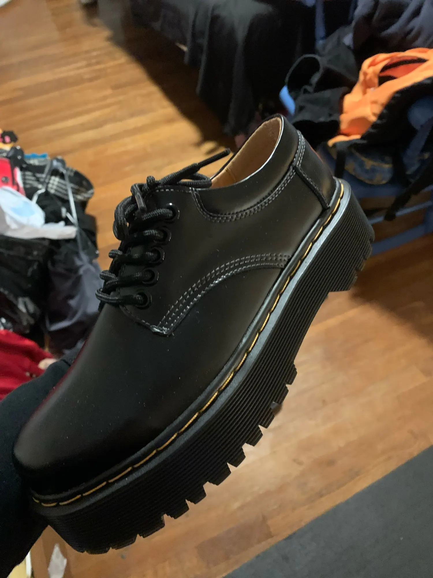 Они прекрасны, даже они приносят бренд DrMarteens на землю, они прибыли через 3 недели, размер правильный, я рекомендую жесткого продавца только 3 точных недели, чтобы прибыть, Я очень доволен качеством этих туфель, они действительно выглядят идеально в два раза, я бы купил у продавца снова