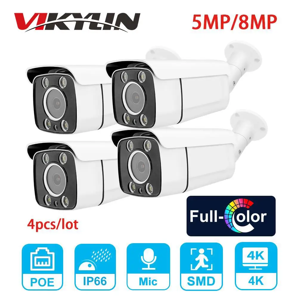 Hikvision, совместимая с 5-мегапиксельной POE IP-камерой, полноценная цветная 8-мегапиксельная сетевая IPC цветная Vu Hikvision протоcl для Hikvision NVR, 4 шт.