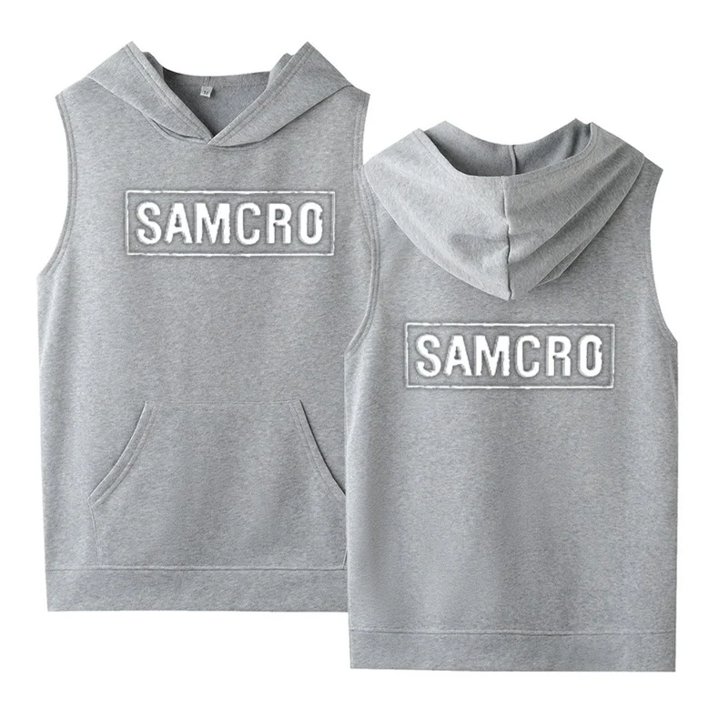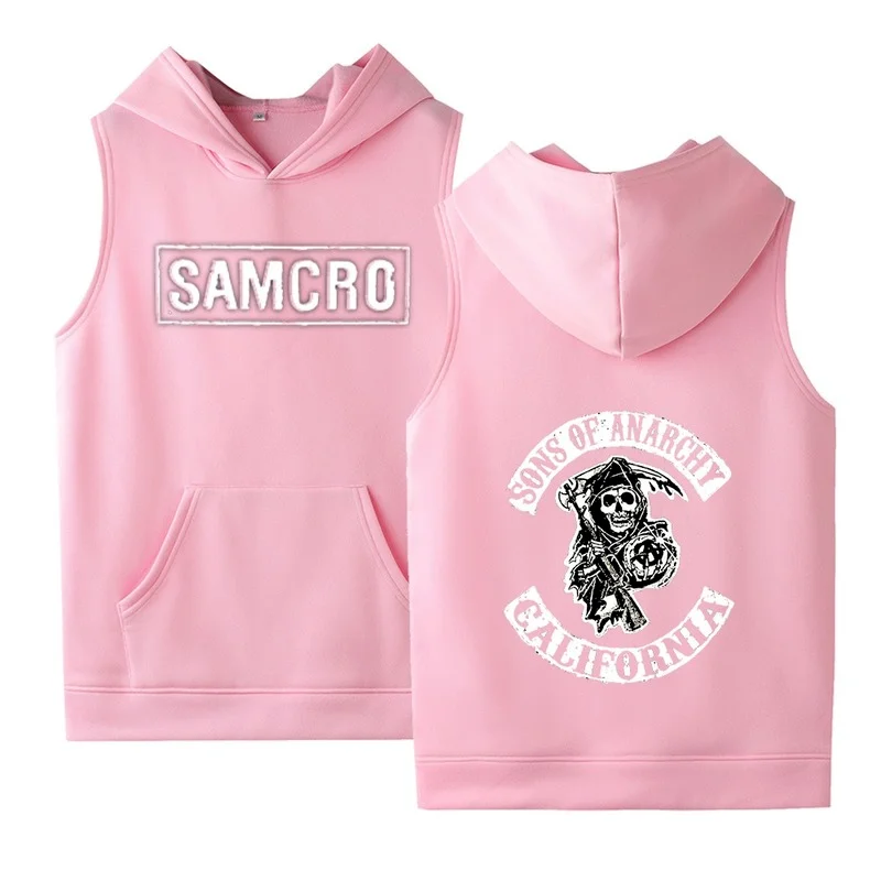 Мужская хлопковая толстовка с капюшоном и принтом, без рукавов