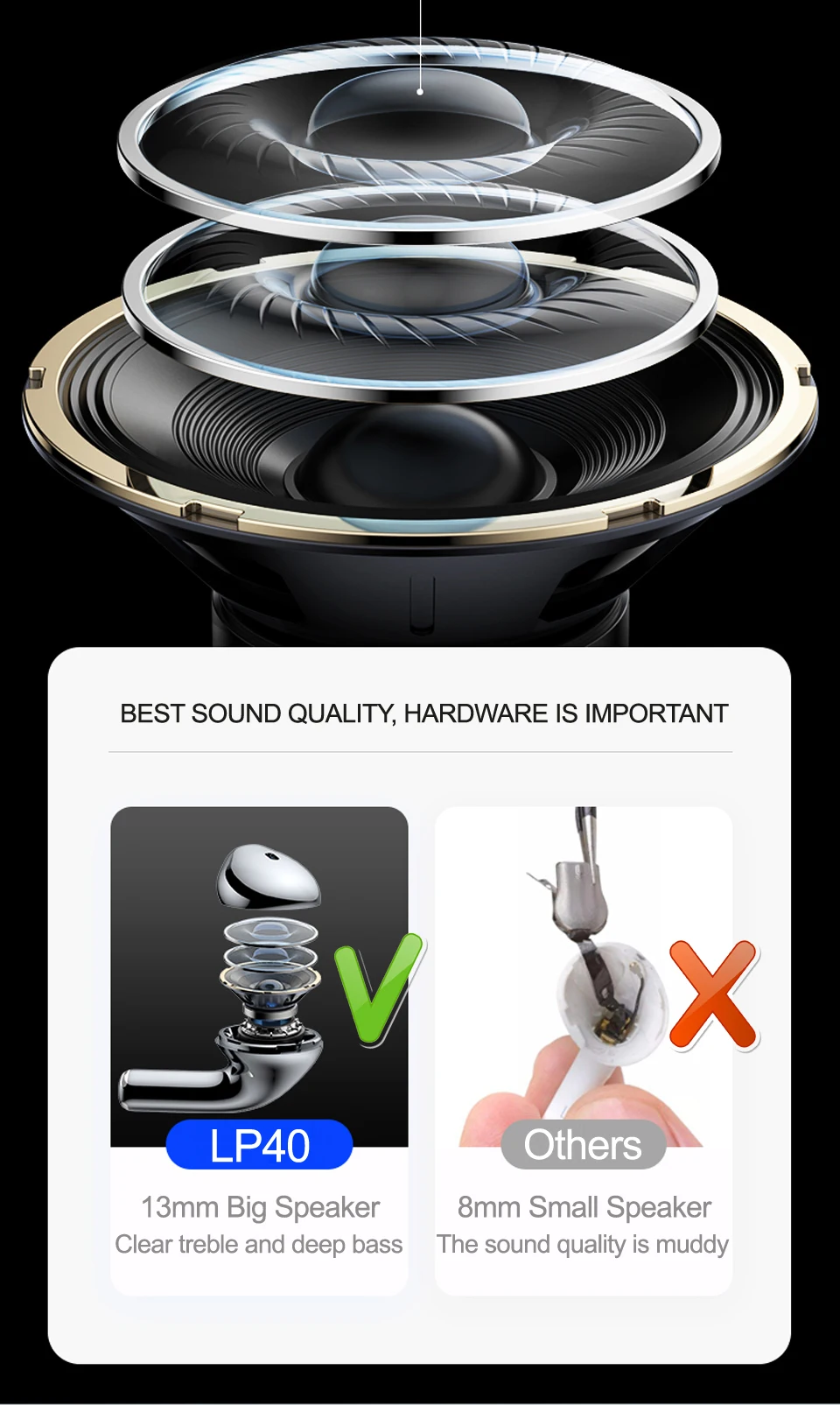 Наушники Bluetooth поставляются с мини-зарядным устройством для длительного использования. Настоящие беспроводные наушники могут автоматически сопрягать устройства без каких-либо действий, попрощайтесь с утомительными операциями. Беспроводное Bluetooth-соединение TWS с наушниками, низкое энергопотребление и стабильный сигнал.