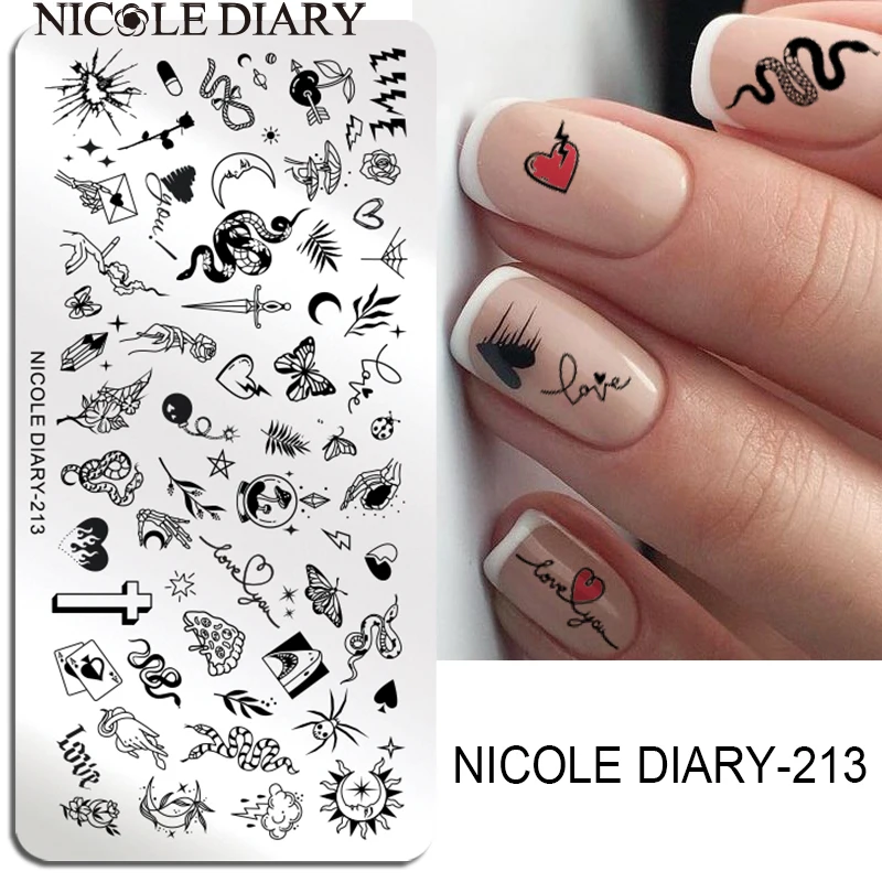 Пластины для стемпинга ногтей с изображением сердечного ритма Николь дневник любовь письмо цветок валентинки маникюрный штамп шаблоны трафарет форма змея Декор