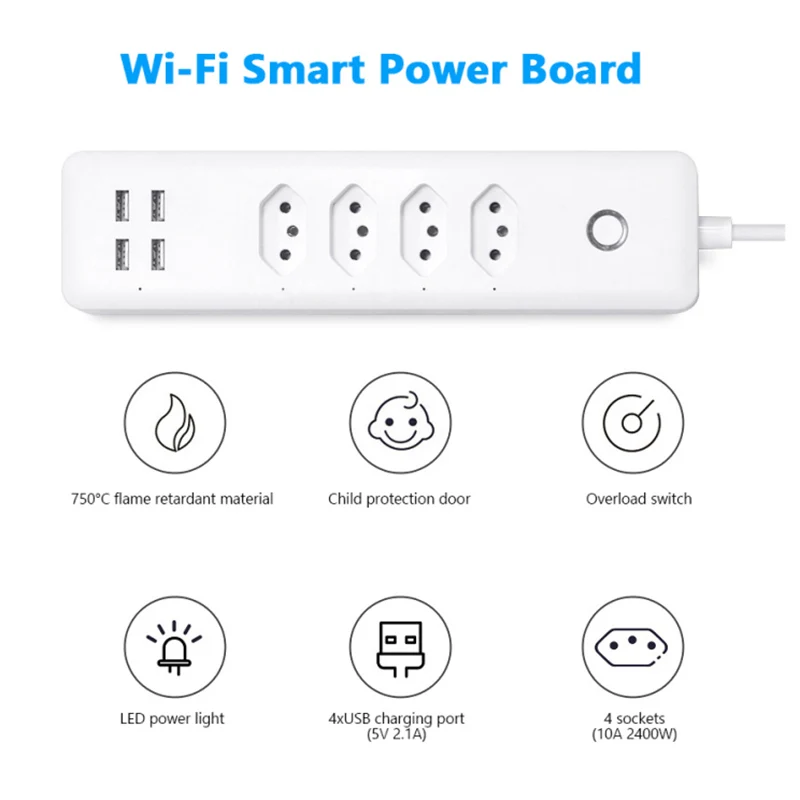 Умный удлинитель Tuya с Wi-Fi, 4 штекера, 4 порта USB для зарядки