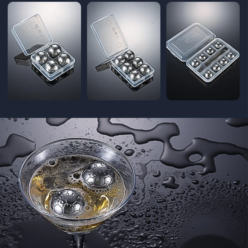 Кубики льда из нержавеющей стали в форме футбольного мяча, 8 шт.