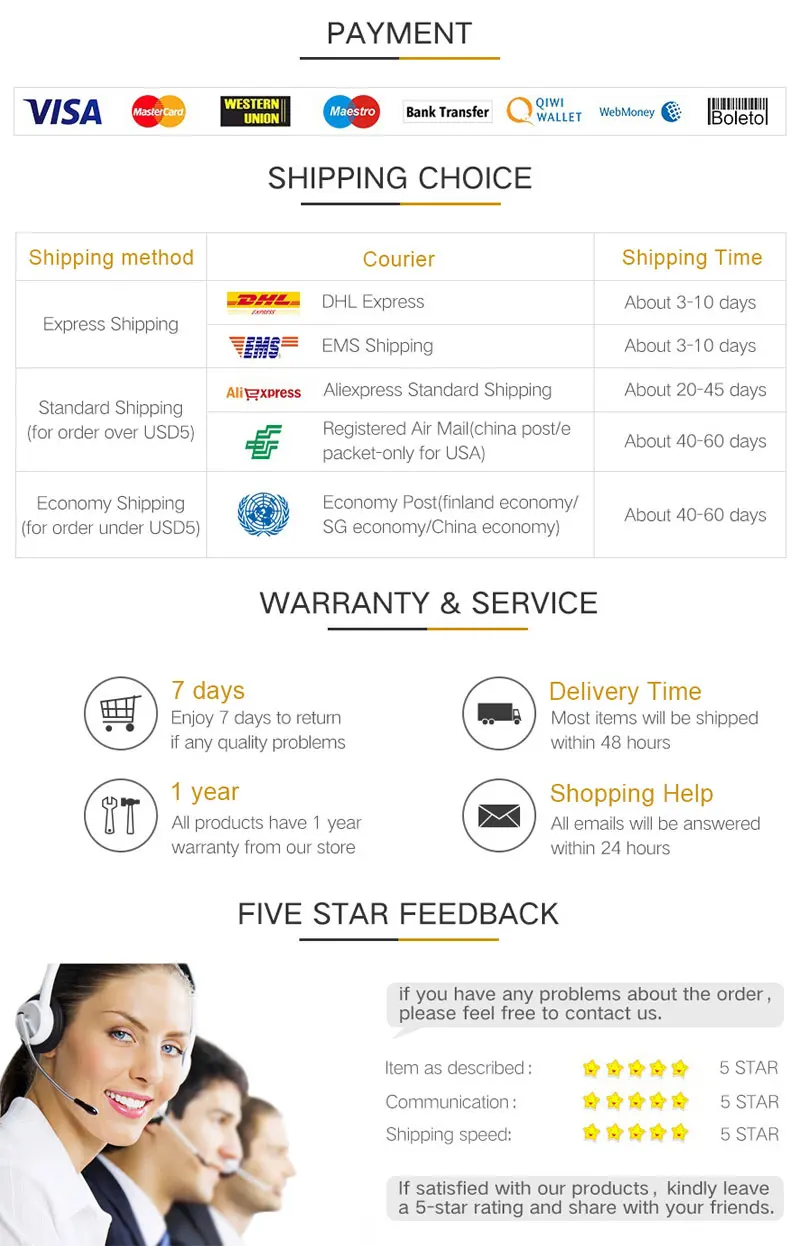 Если вы, к сожалению, обнаружите повреждения при получении товара, пожалуйста, не открывайте спор или не оставляйте плохой отзыв в спешке. Я прошу вас сначала связаться с нашей службой поддержки клиентов. Мы ответим позитивно и повторно отправим его или вернем его в полном соответствии с вашим умом.