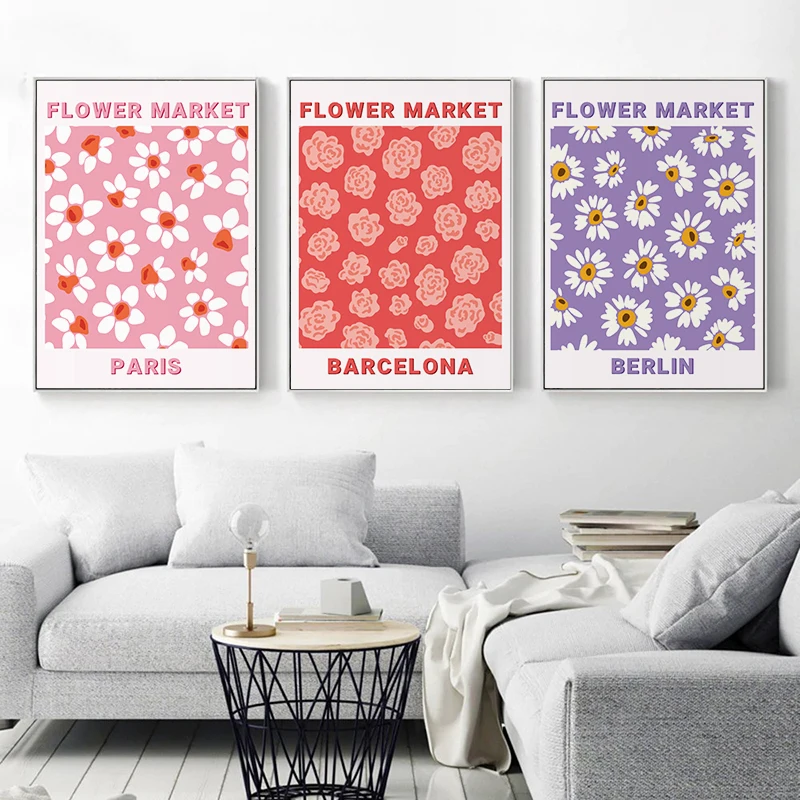 Плакаты и принты скандинавских цветочных рынков, декоративные картины в стиле Барселоны, Парижа, Берлина, настенные художественные картины для украшения гостиной