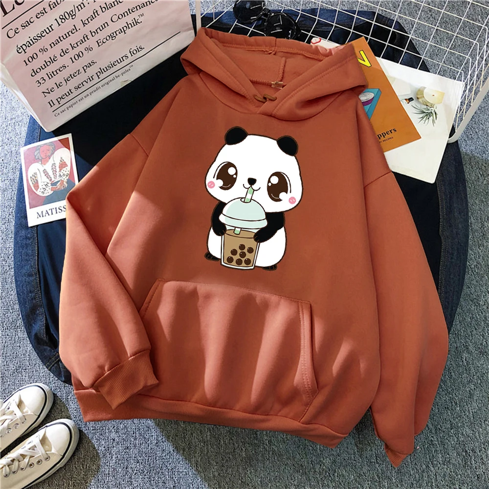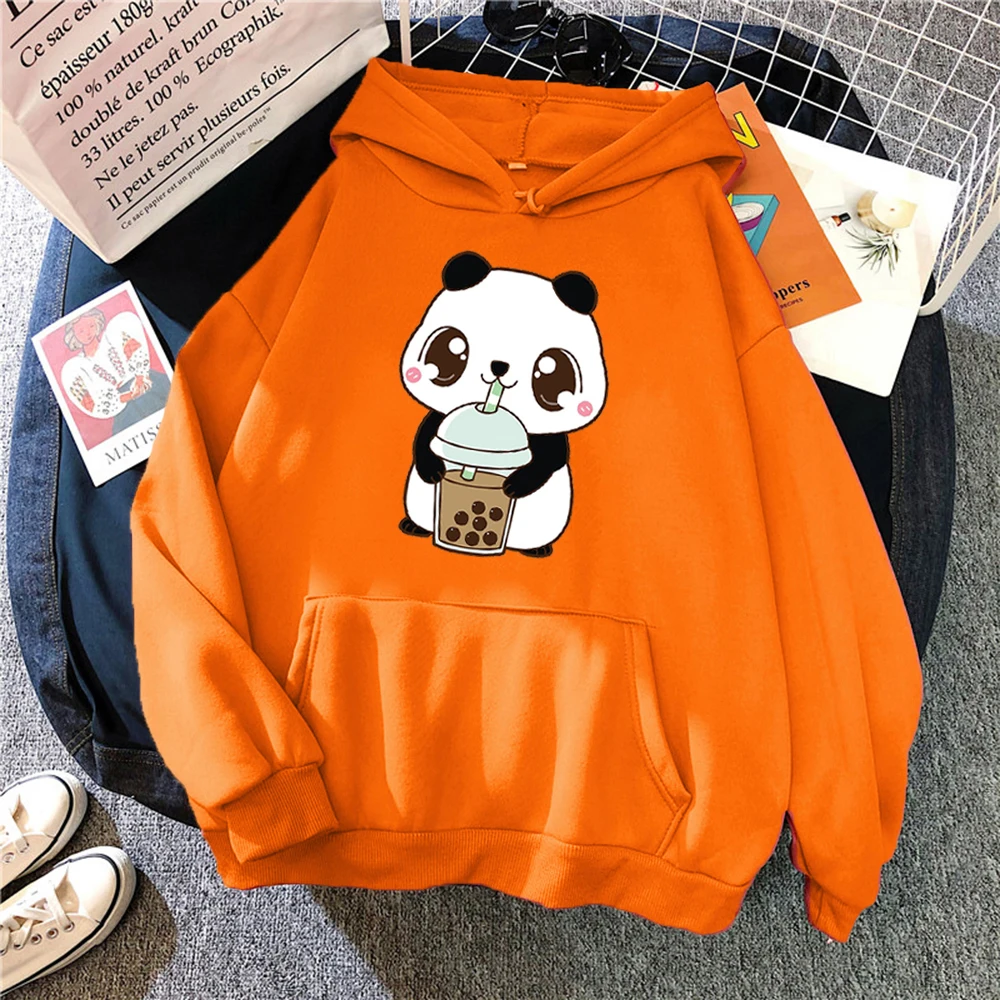 Милая мужская толстовка с рисунком панды, принтом воды, флисовая свободная уличная одежда с капюшоном, женский удобный худи, толстовка с аниме