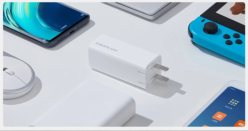 Название продукта: супер зарядное устройство Mi GaN 65 Вт (1A1C) Выходной порт: Type-C, USB-A Вход: 100 ~ 240 В, Гц, а