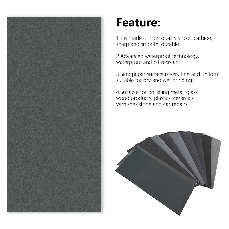 2. Прочный и высококачественный шлифовальный лист-высокая зернистая наждачная бумага от 400 до 3000 (супер тонкая). Отлично подходит для деревообработки, полировки металла, автомобильной шлифовки и других проектов по улучшению дома.