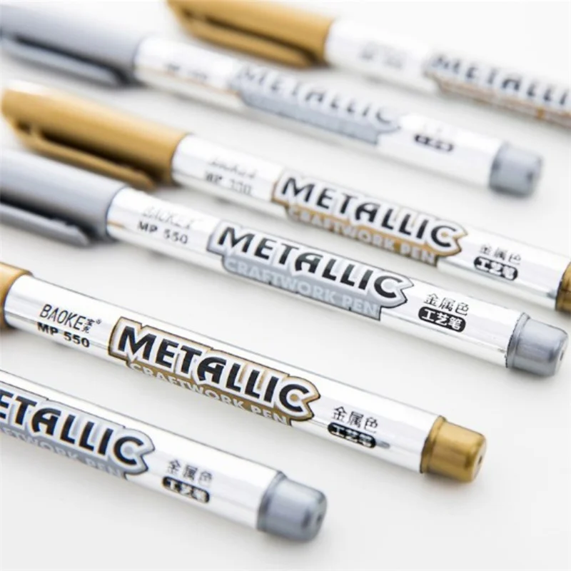 Ручка-маркер металлического цвета, 3 шт.лот, золотые и серебряные м...