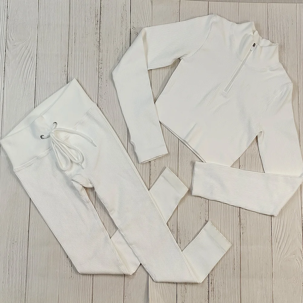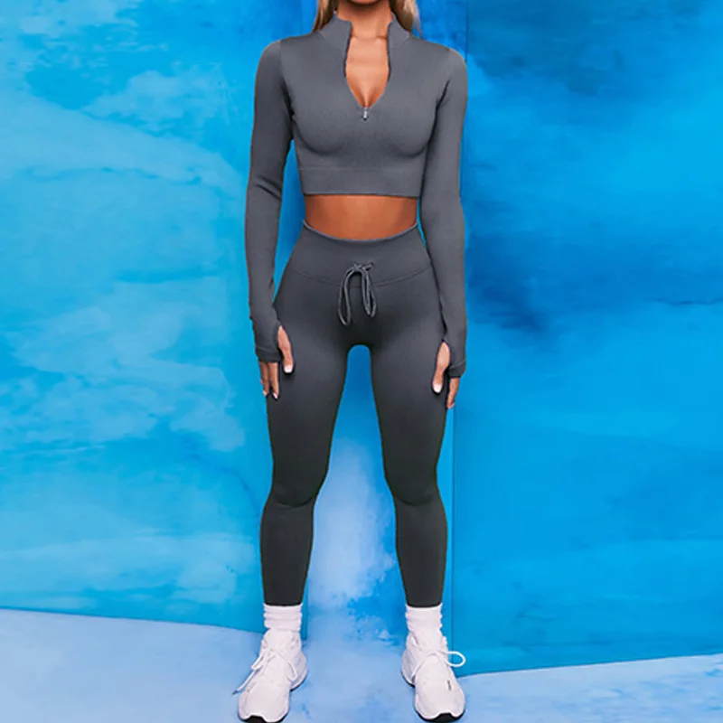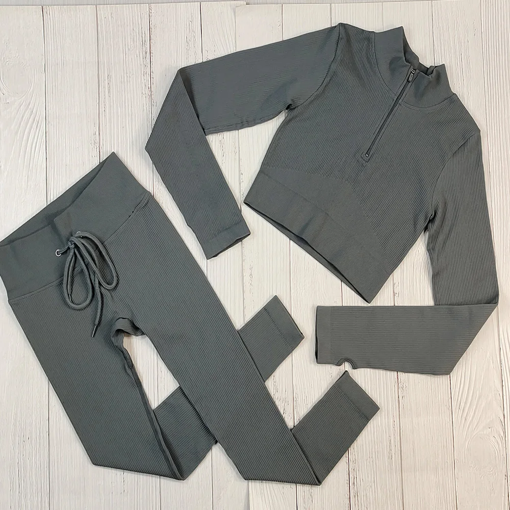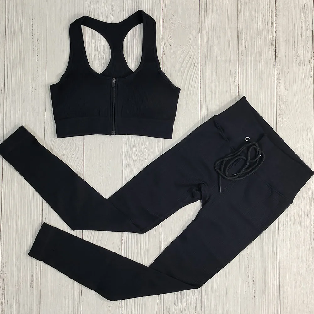 Одежда для йоги в рубчик, комплект для спортзала, спортивный костюм, костюм для фитнеса, одежда для тренировок, женская спортивная одежда, комплекты с бюстгальтером на молнии и леггинсами на завязках