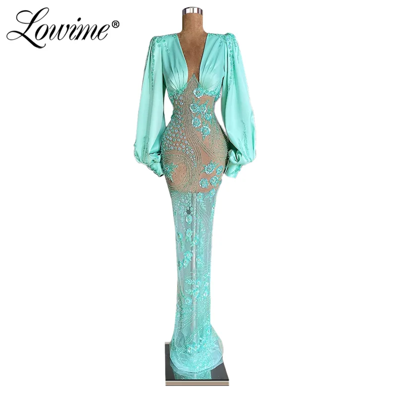 Женское длинное вечернее платье Lowime, официальное платье Среднего Востока в Дубае, модель 2021 года, платья знаменитостей с юбкой-годе, выпускные платья с бисером