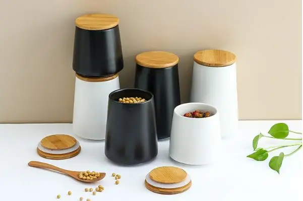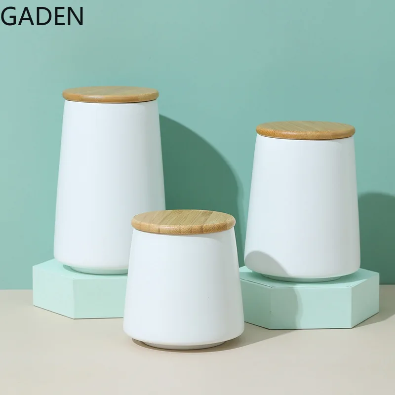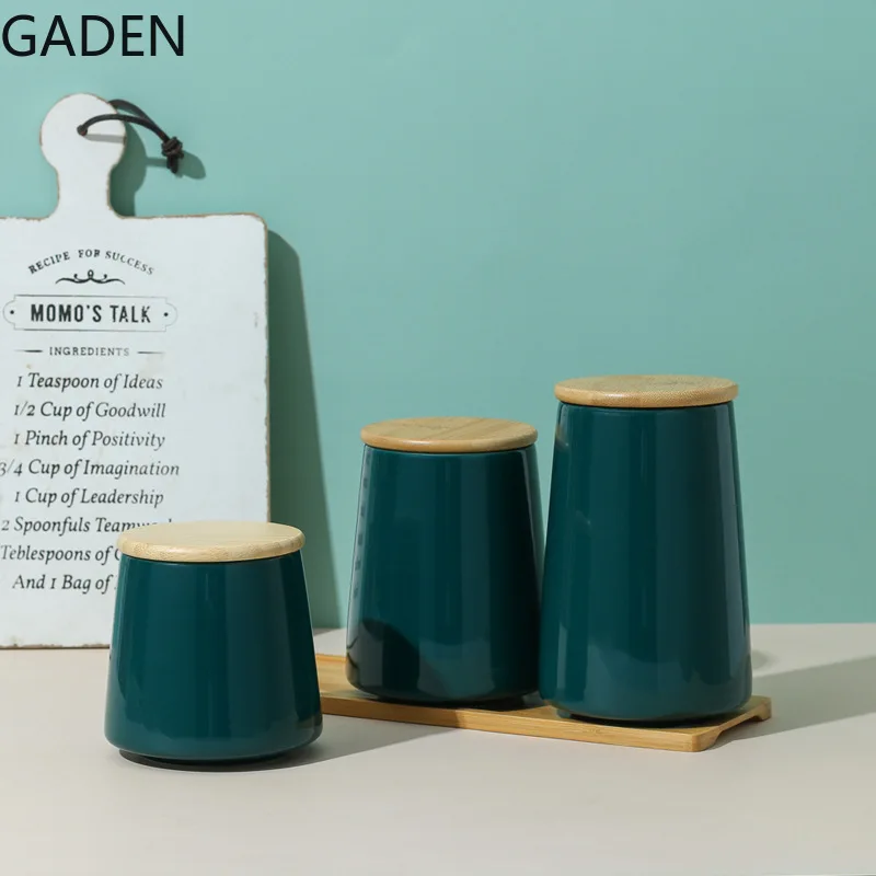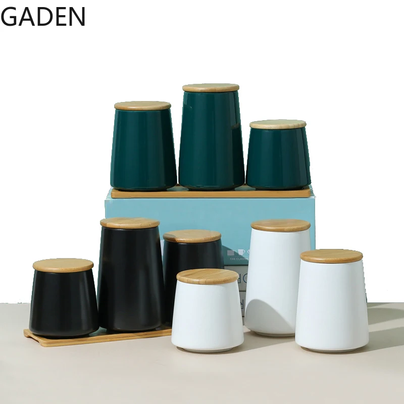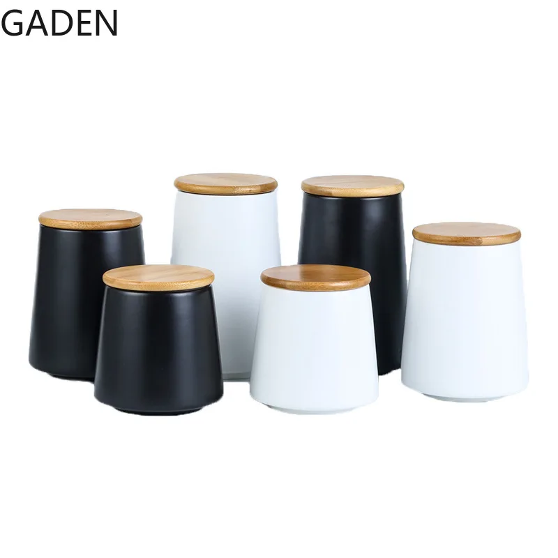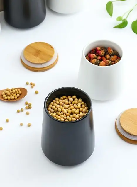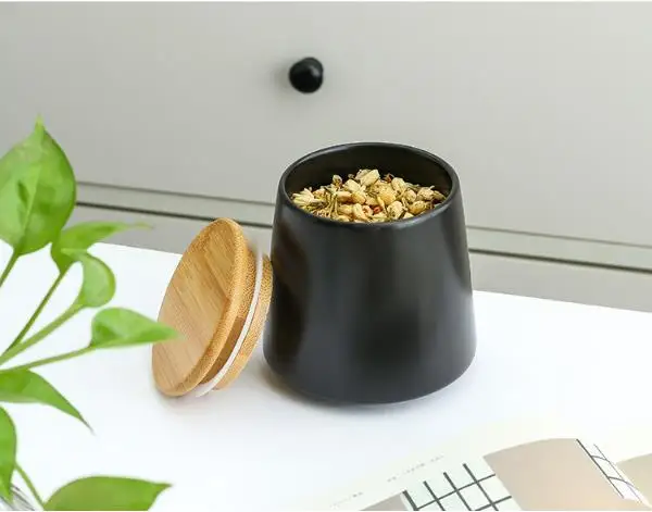 Нордический простой черный керамический телефон 500 мл круглая жестяная банка для чая с бамбуковой крышкой кухонный инструмент для хранения зернистый дозатор для дома