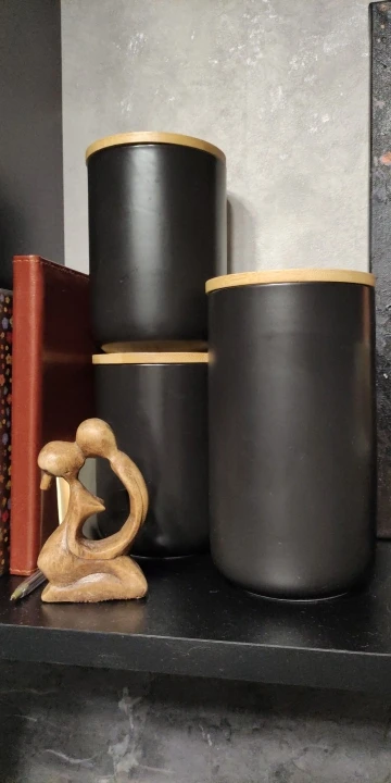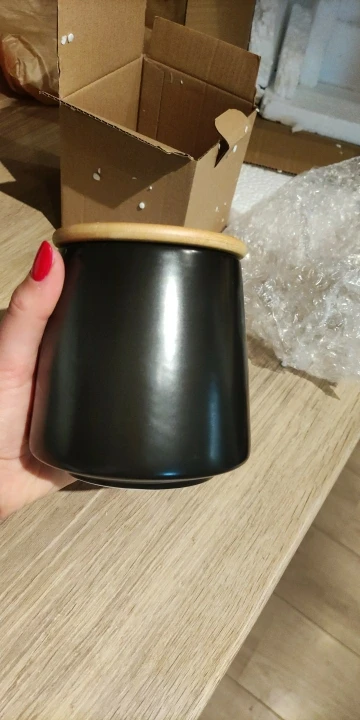 Хороша для хранения кофе, выглядит стильно, крышка прилегает плотно. Доставлена за две недели.