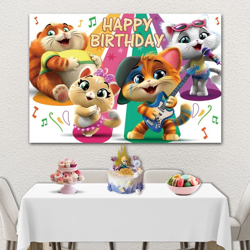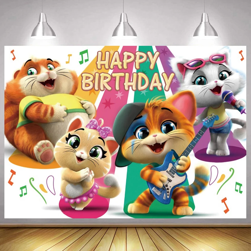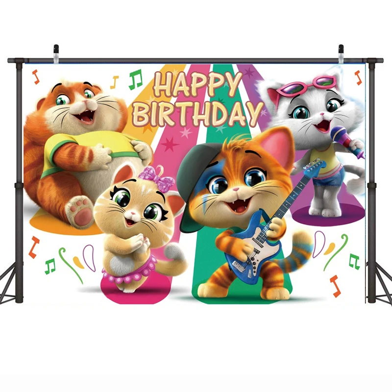 Фон для студийной фотосъемки с изображением мультяшных кошек, 44 дюйма