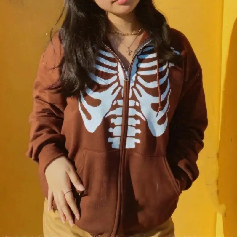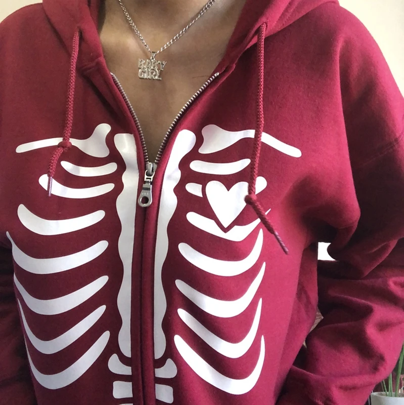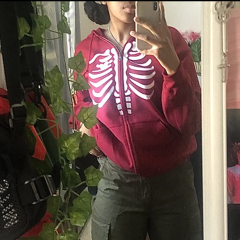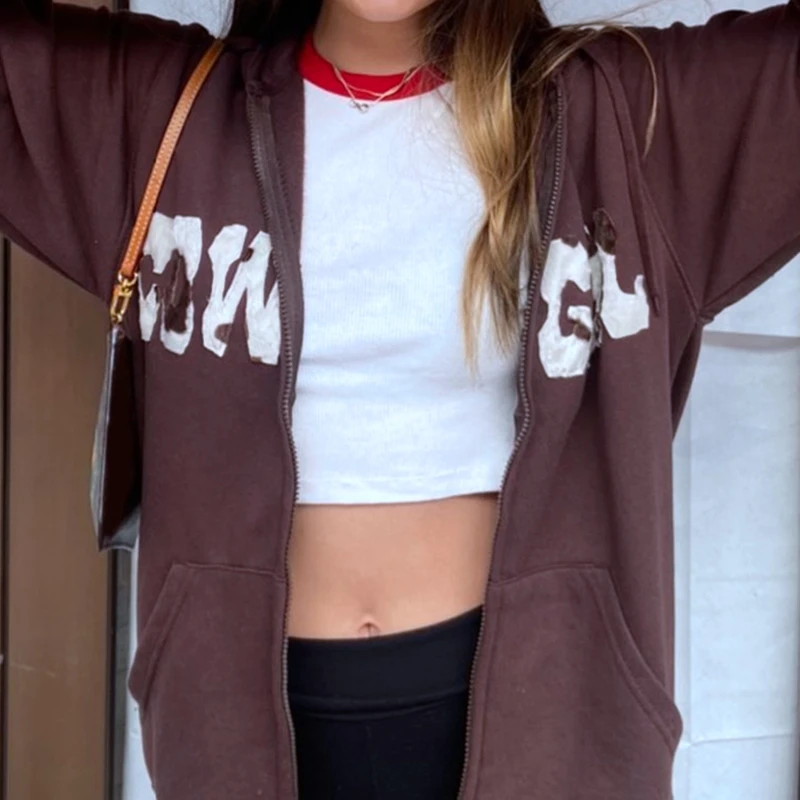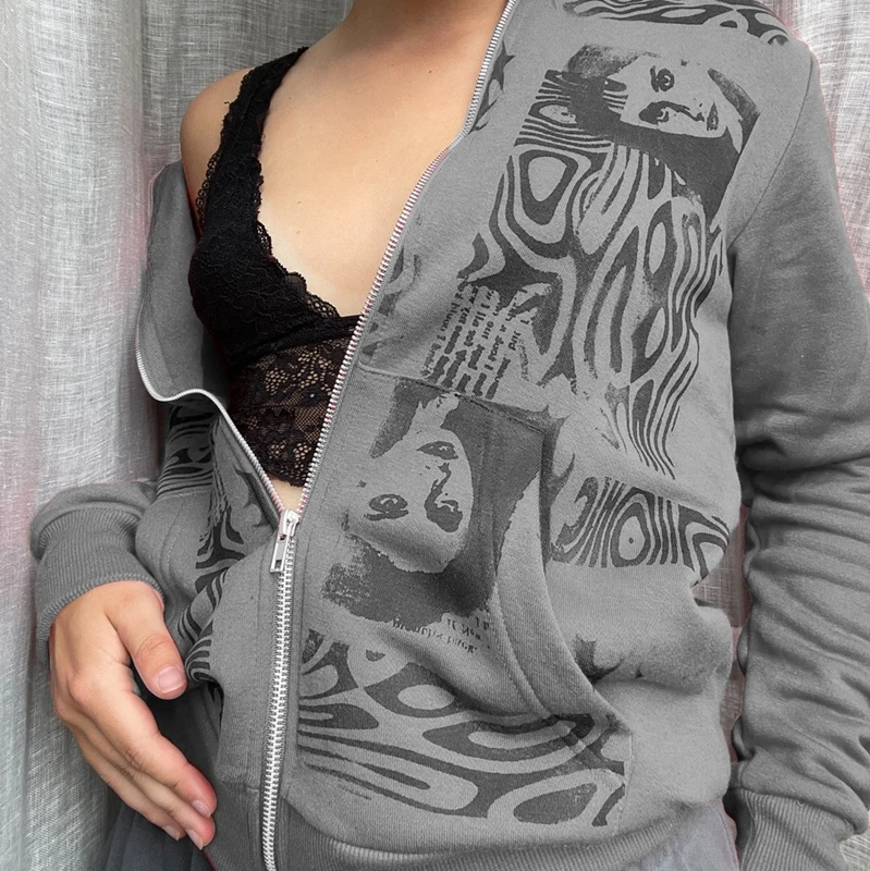 Женская Толстовка Оверсайз Y2K, в готическом стиле, на молнии, с длинным рукавом, в стиле 90-х, винтажная, в стиле Харадзюку