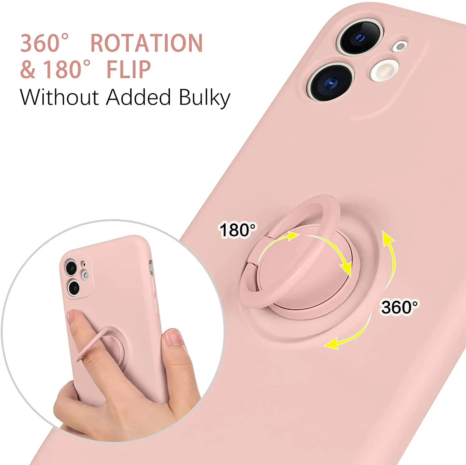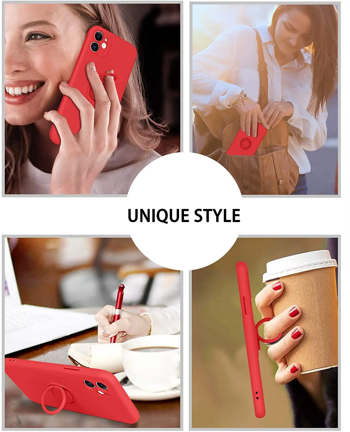 Чехол 3 в 1 из жидкого силикагеля с кольцом-держателем для iPhone SE 2020 7 6S 8 Plus X XR XS 11 12 13 Pro Max Mini