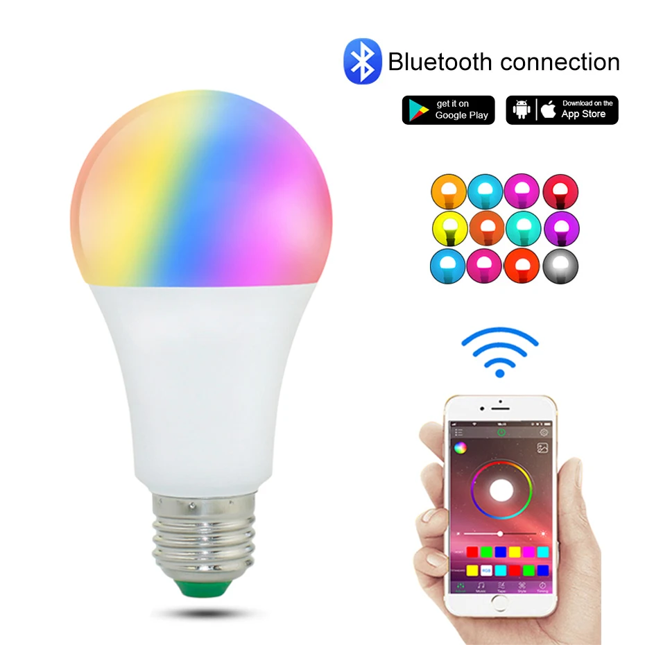 Умный светильник E27 B22 RGB лампа теплого и холодного белого света для внутреннего освещения умные лампы 15 Вт фотолампа Bluetooth Светодиодная лампа счастлисветильник щение APP