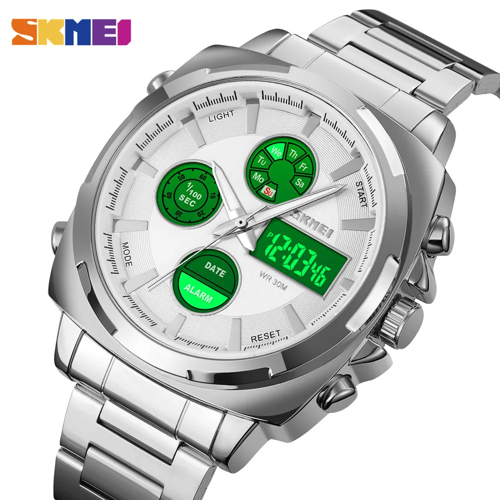 SKMEI Топ Роскошные водонепроницаемые мужские наручные часы из нержавеющей стали аналоговые кварцевые цифровые Chrono спортивные часы Relogio Masculino 1673