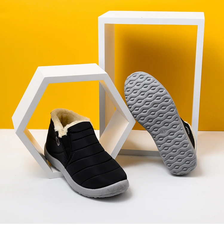 Ботинки женские зимние, теплые, черные, водонепроницаемые, 2021