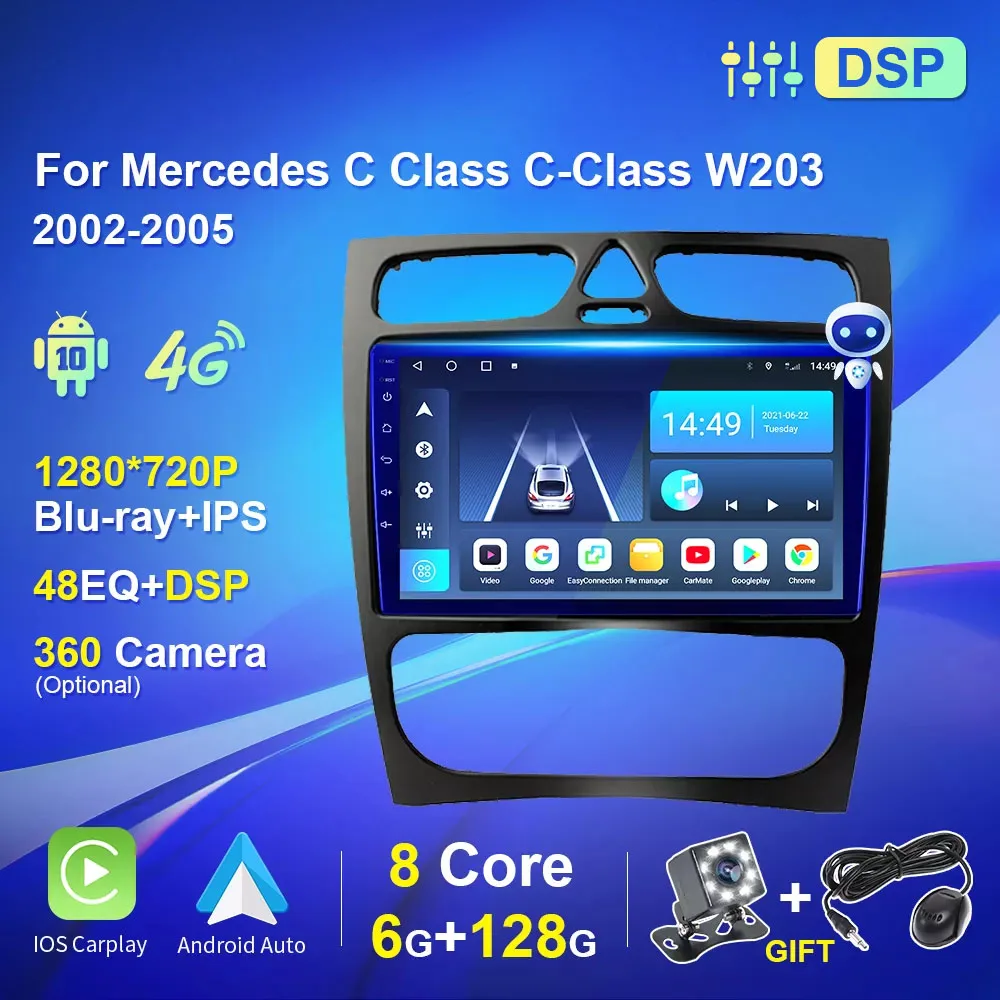 Авторадио для Mercedes C Class C-Class W203 2002 2003 2004 2005 2din автомобильное радио, мультимедийный плеер, GPS-навигация Carplay 4G WiFi