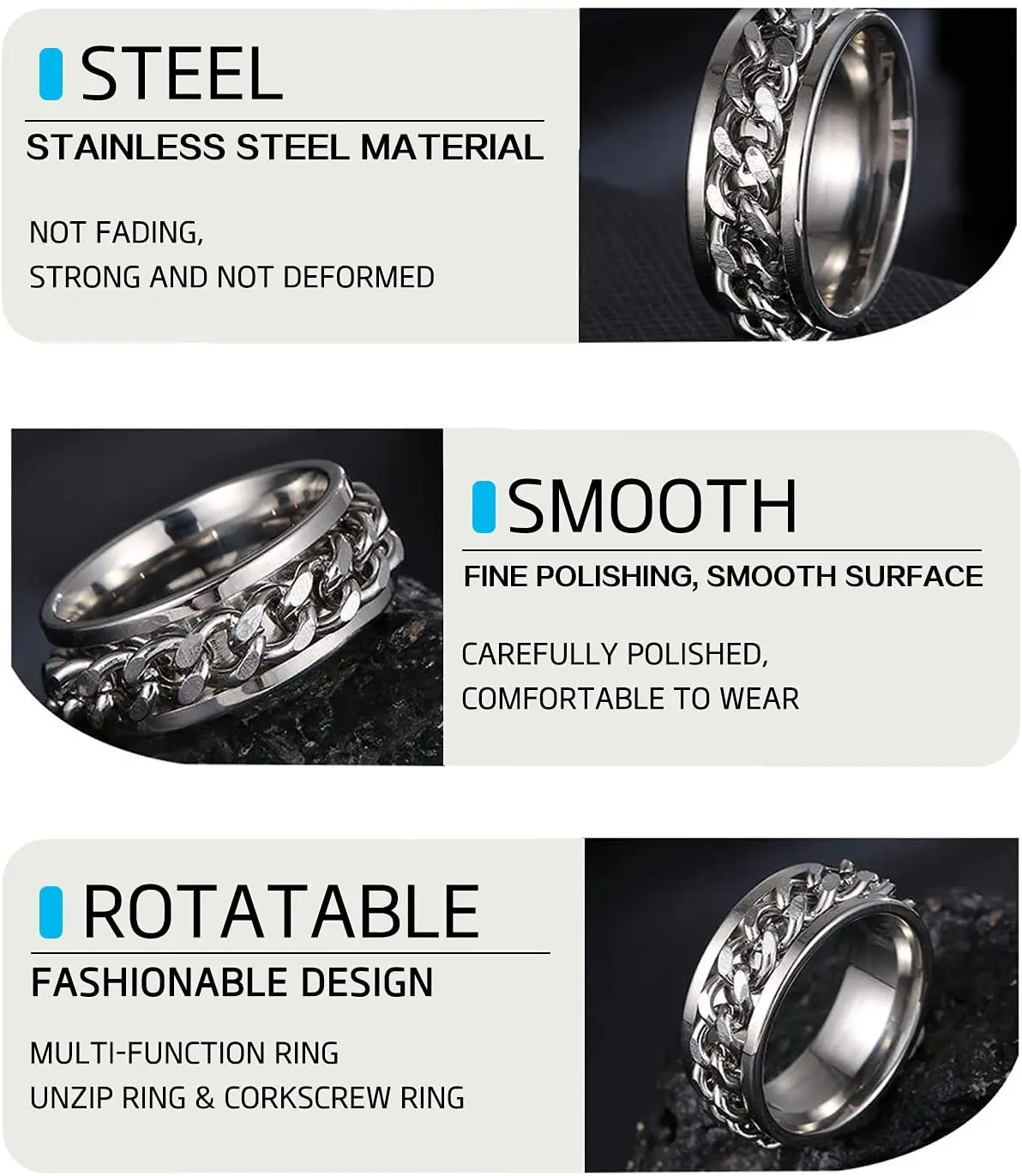Кольцо-Спиннер для мужчин и женщин, вращающаяся цепочка из нержавею...