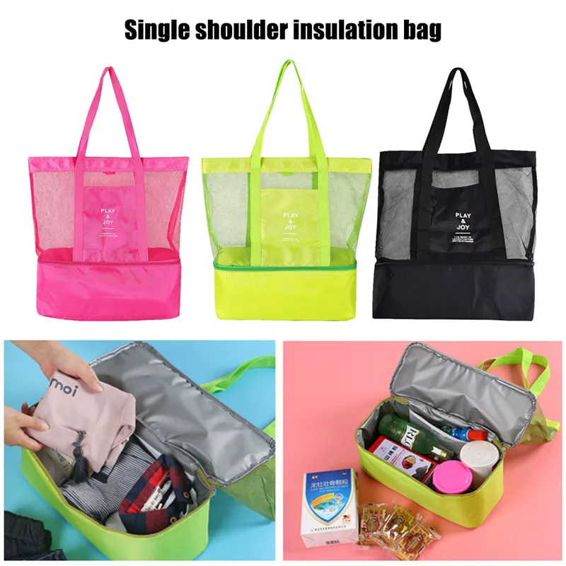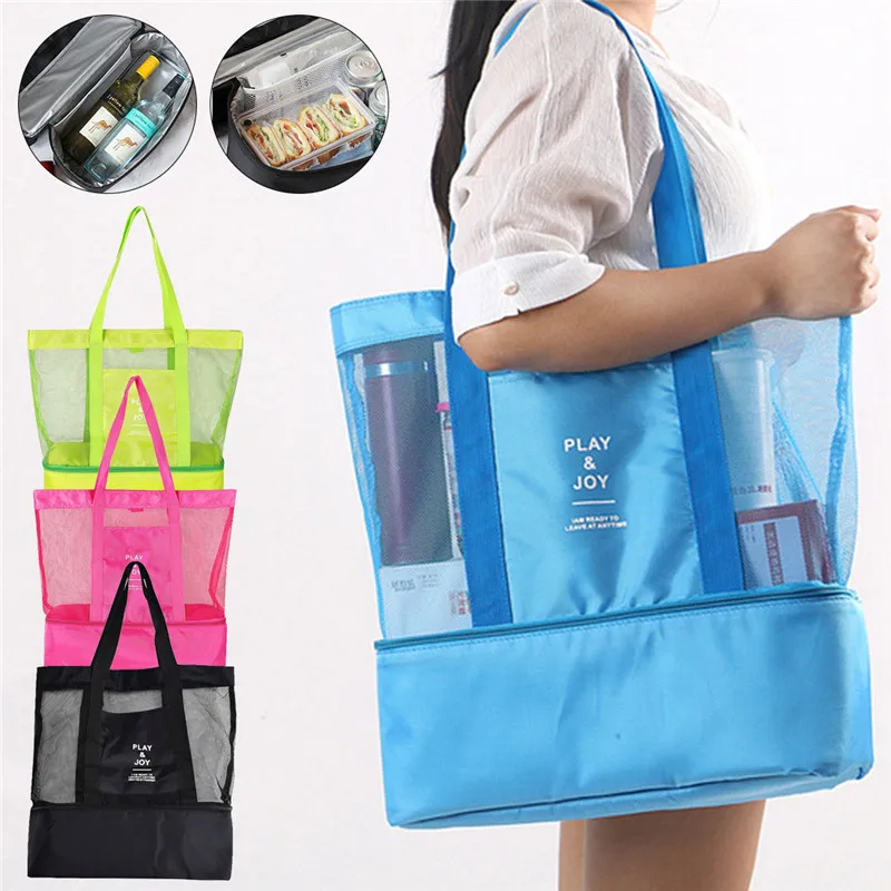 Вместительная пляжная сумка, Термосумка для ланча, женская сумка-тоут для хранения еды, прозрачная сумка-холодильник с молнией для пикника