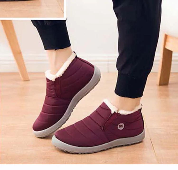 Женские легкие кроссовки без шнуровки, повседневная водонепроницаемая обувь на плоской подошве, теплые дамские ботинки, Осень-зима