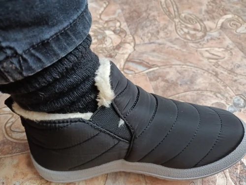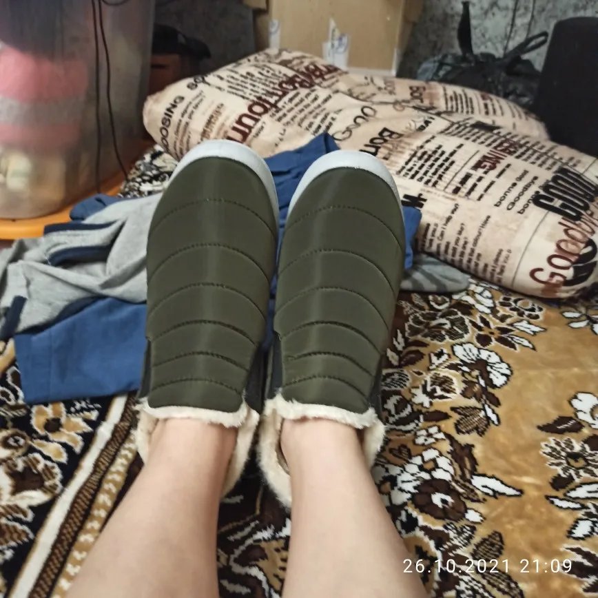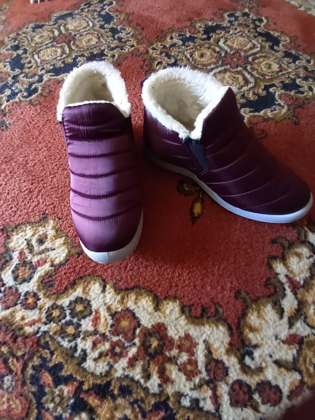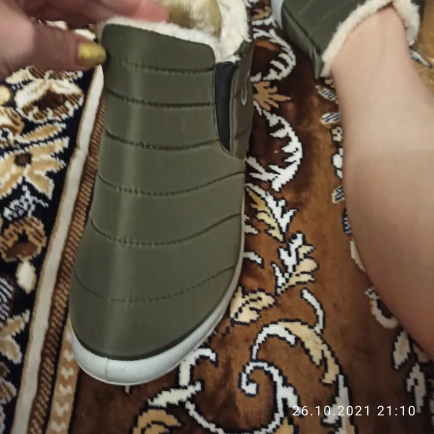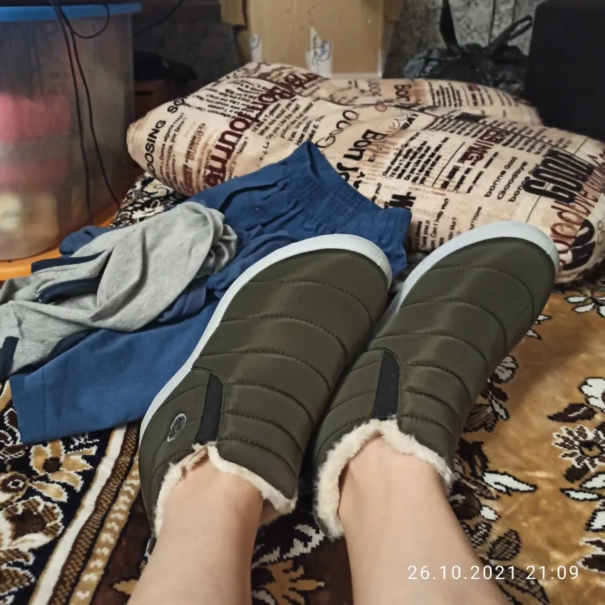 Очень удобная обувь, тепло в ней. Ходила по дому, привыкала, очень комфортно, как в тёплых тапках. Цвет мне очень понравился.Покупала чтобы гулять с собакой как похолодает, очень удобно, никаких застёжек.Пока не греют батареи, можно дома ходить.