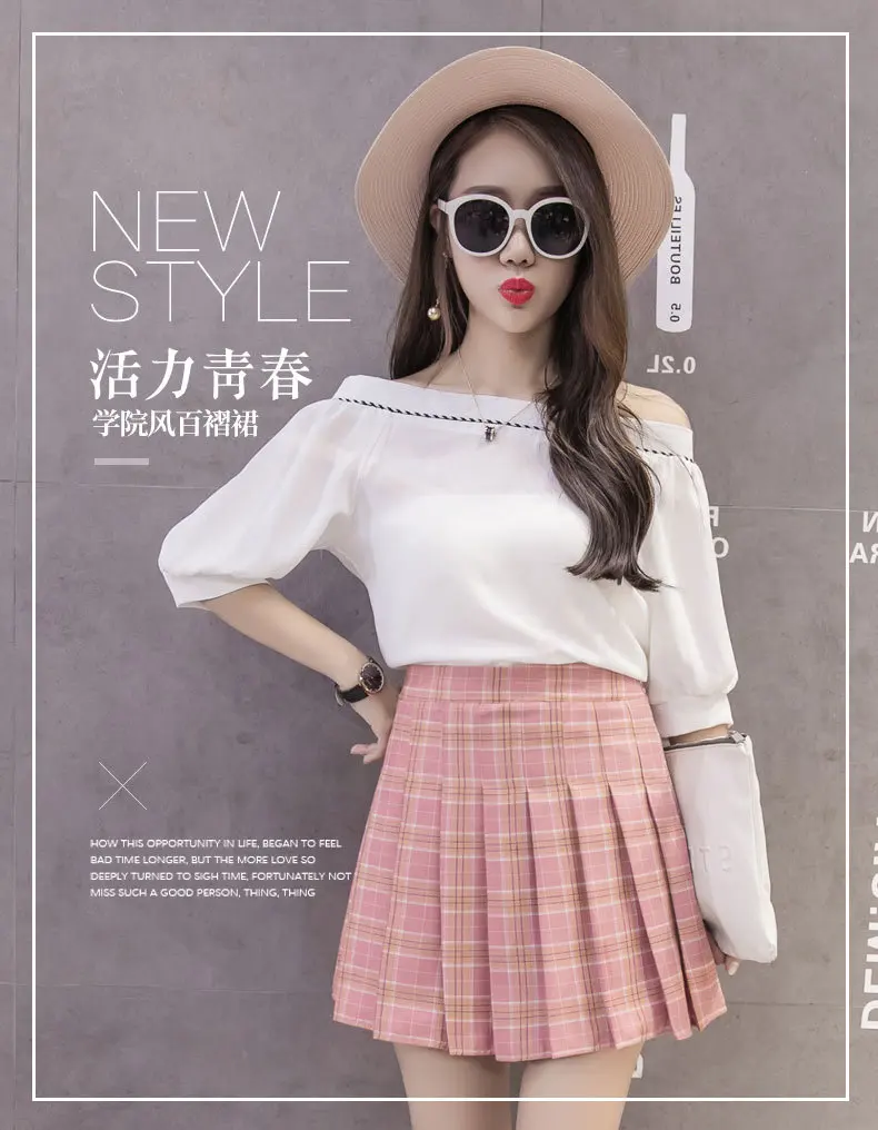 Короткая юбка в стиле Харадзюку, новая Корейская клетчатая юбка, же...