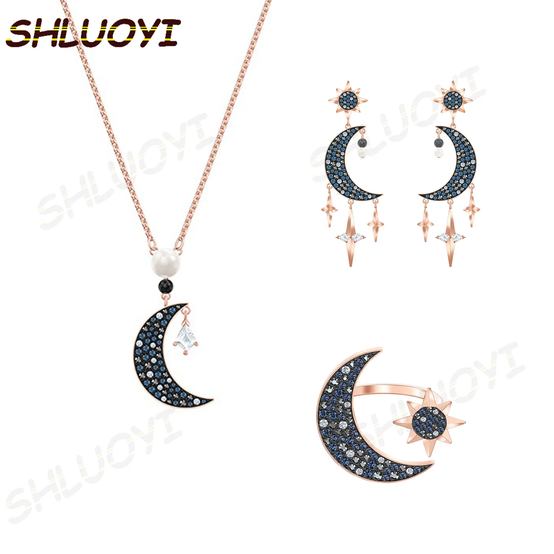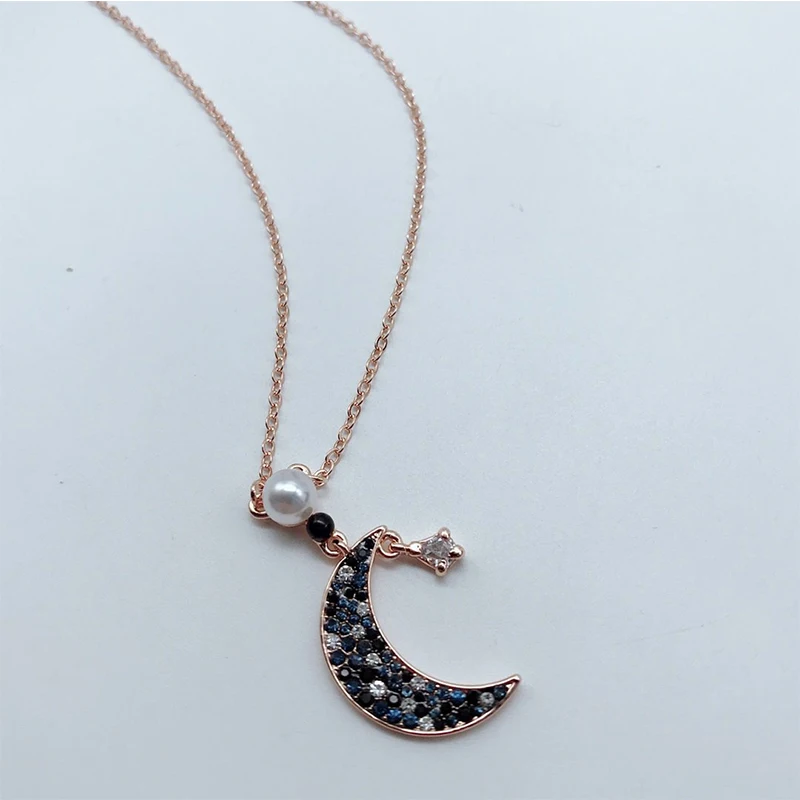 Модные ювелирные изделия SWA, символическое свежее ночное небо, Луна и звезда, украшение, кристаллическое ожерелье, очаровательный романтический подарок