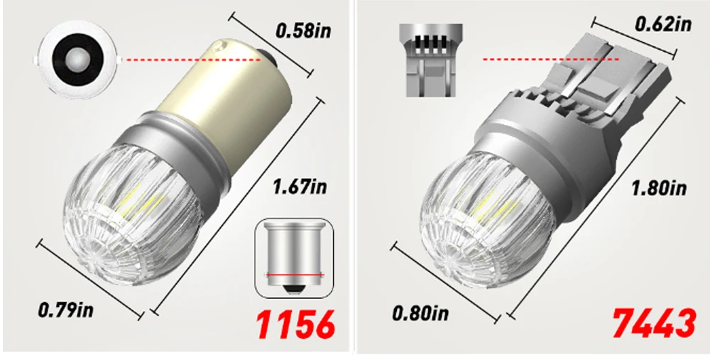 Розетка 1: 1156 BA15S P21W 7506Разъем 2: T20 7443 W21/5W WY21W 7440 W21W 7441