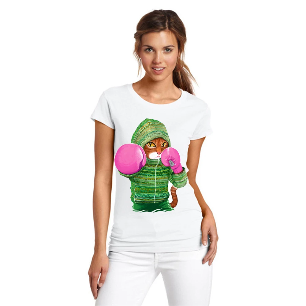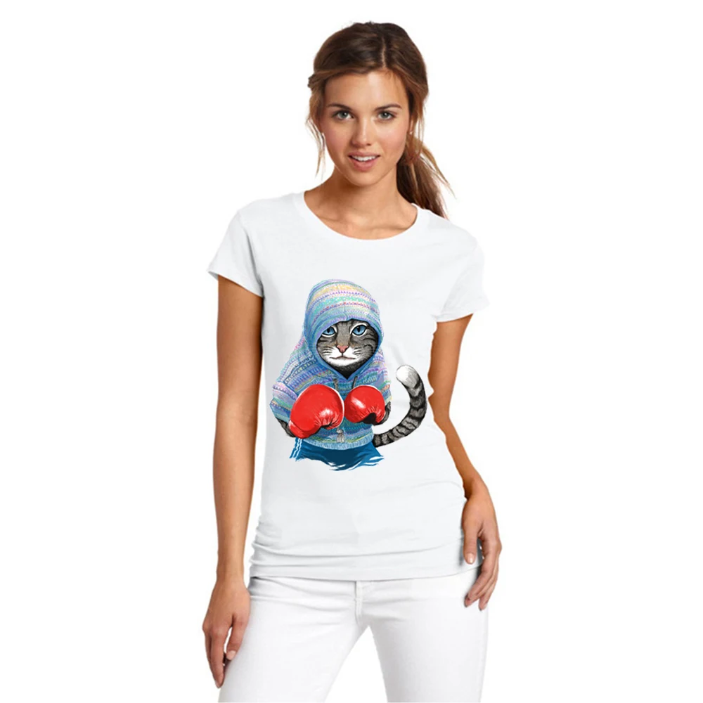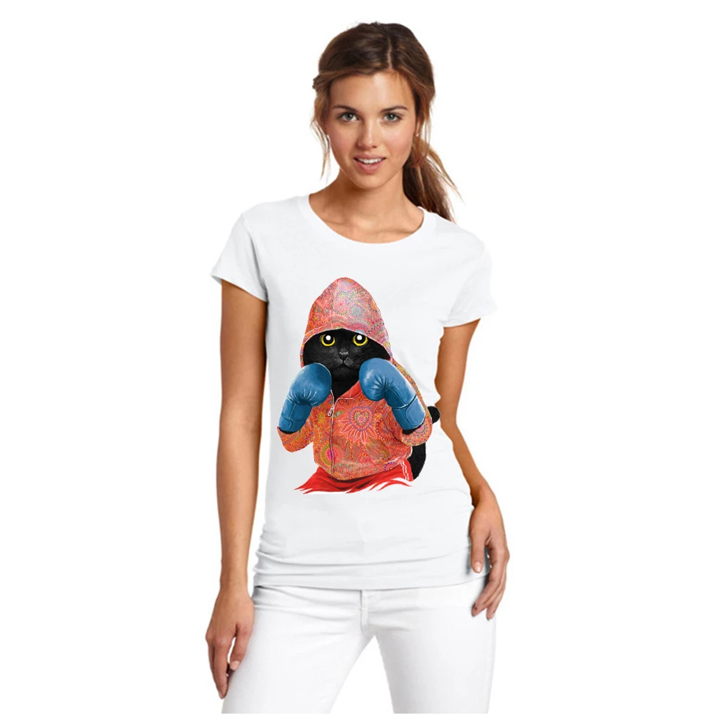 Женская футболка-боксёр с коротким рукавом, в виде кошки