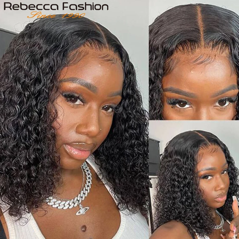Парик Rebecca 13X4 с глубоким вырезом, Короткие натуральные волосы на сетке спереди, бразильские прямые волосы, с глубоким кудрявым кружевом, передний парик