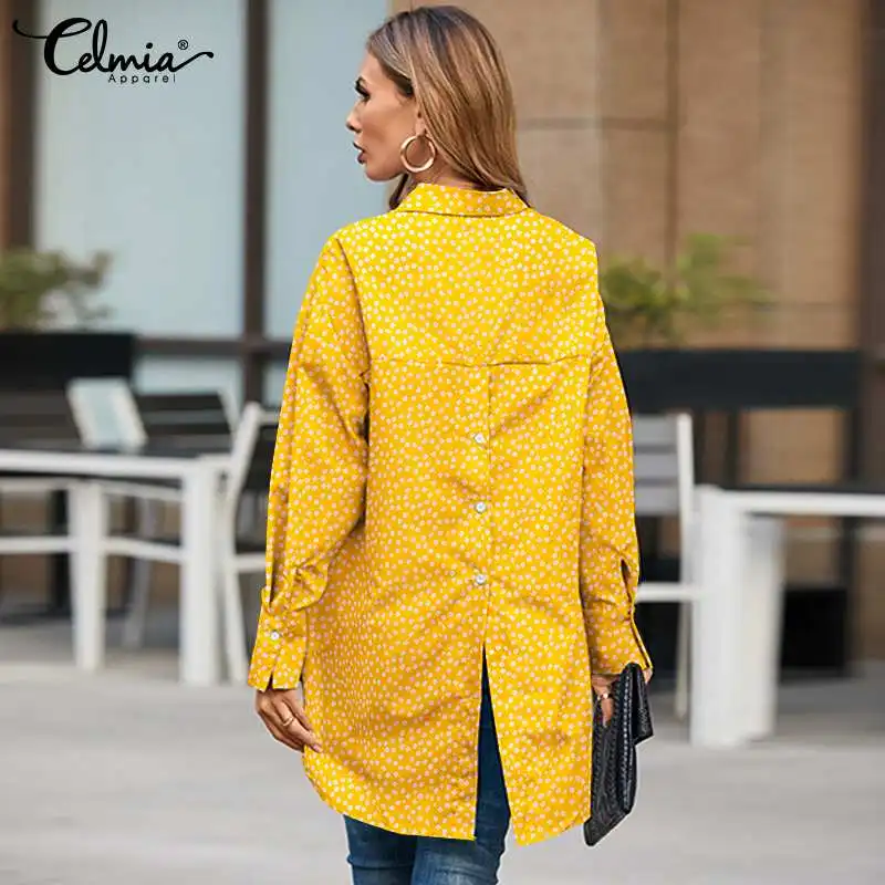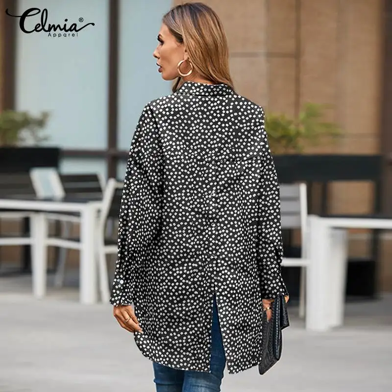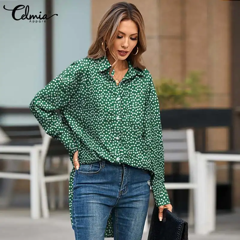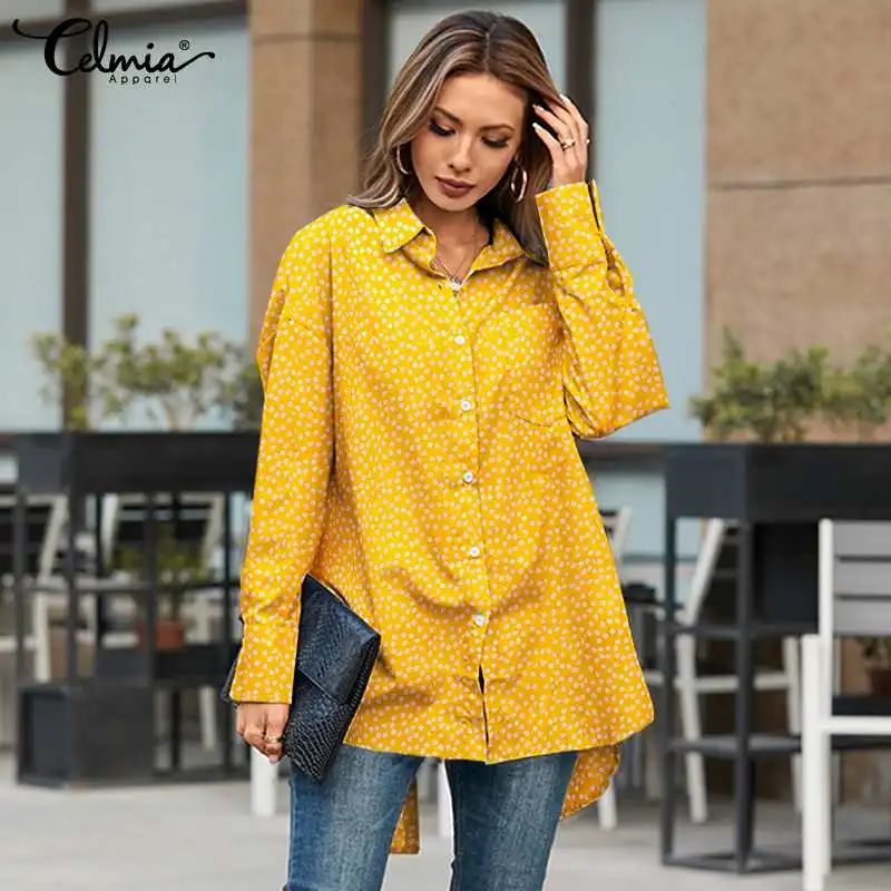 Повседневные рубашки Celmia, женские богемные блузки с цветочным принтом и длинным рукавом, модные свободные блузки большого размера, шикарный топ с асимметричным разрезом и подолом