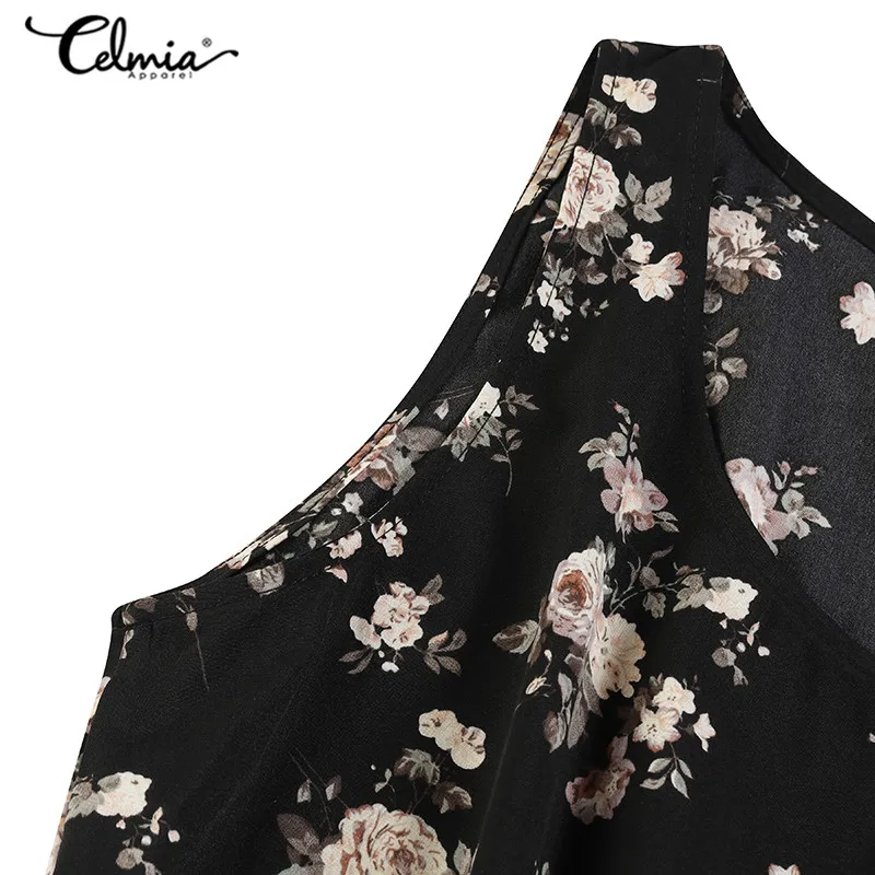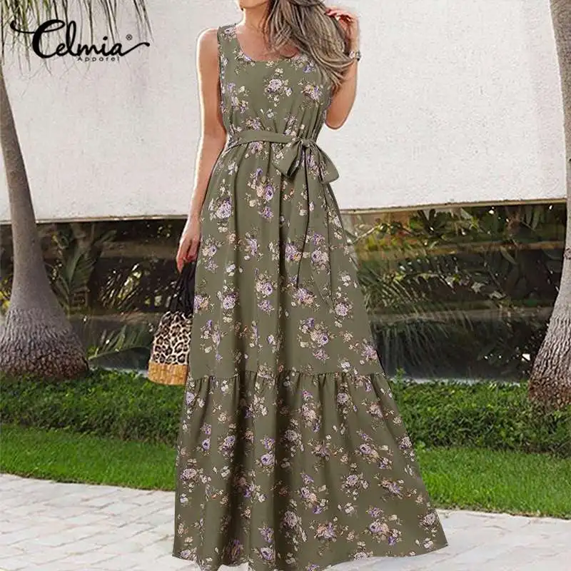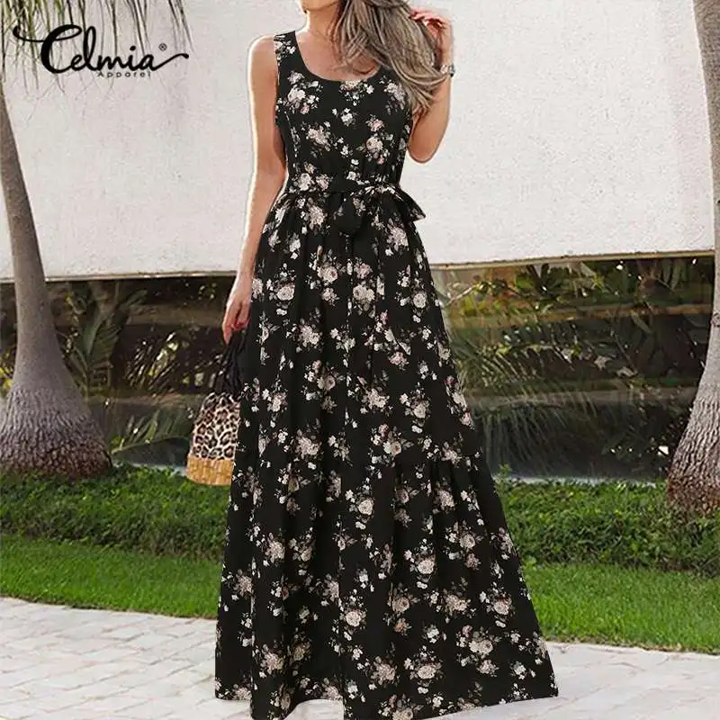Celmia 2022 женское летнее платье, сексуальное длинное платье без рукавов с цветочным принтом и поясом, повседневное вечерние ное вечернее ТРАПЕЦИЕВИДНОЕ пляжное платье оверсайз