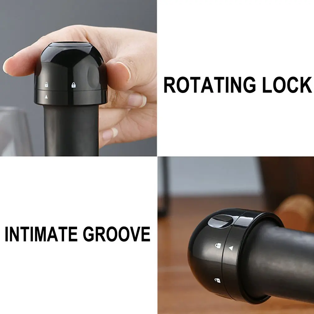 Эта пробка для бутылки красного вина с инновационным поворотным замком, более эффективная и простая в использовании, и выбор силикагеля для контакта с пищевыми продуктами для внутренних уплотнительных частей винной пробки, удобнее в использовании.