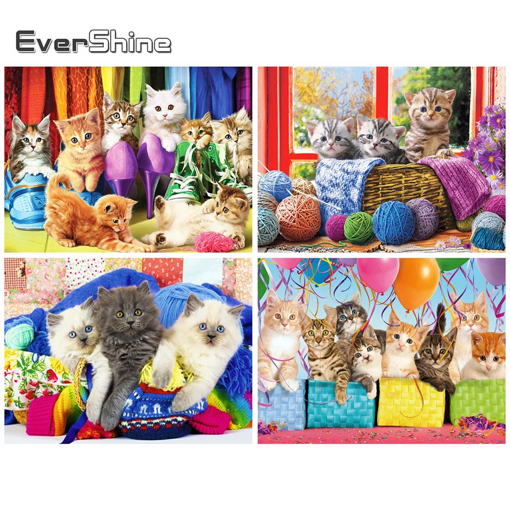 Evershine Алмазная вышивка кошки вышивка крестом Алмазная мозаика животные Новое поступление Алмазная Живопись полная выкладка декор для дома